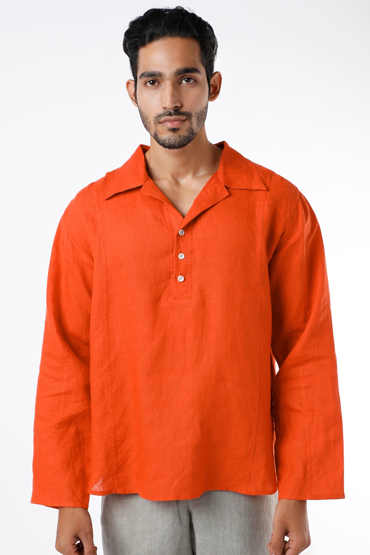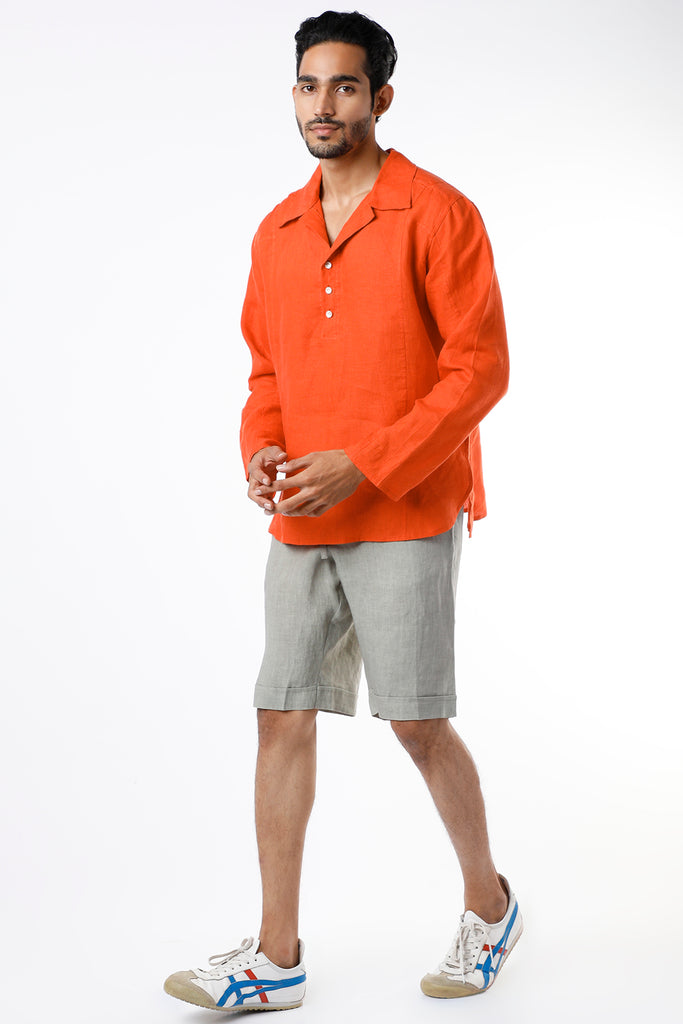 Featuring A Orange Colored Shirt Kurta In Linen Base With Full Sleeves. This Contains Only One Piece.
