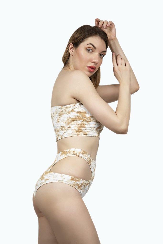 Peitho Bikini is just for a simple day out but can be perfect as a party outfit as well. Although you can style this outfit for a day event. This bikini can be a nice option to be the showstopper. White, with yellow floral prints, is quite feminine and refreshing for these amazing days.