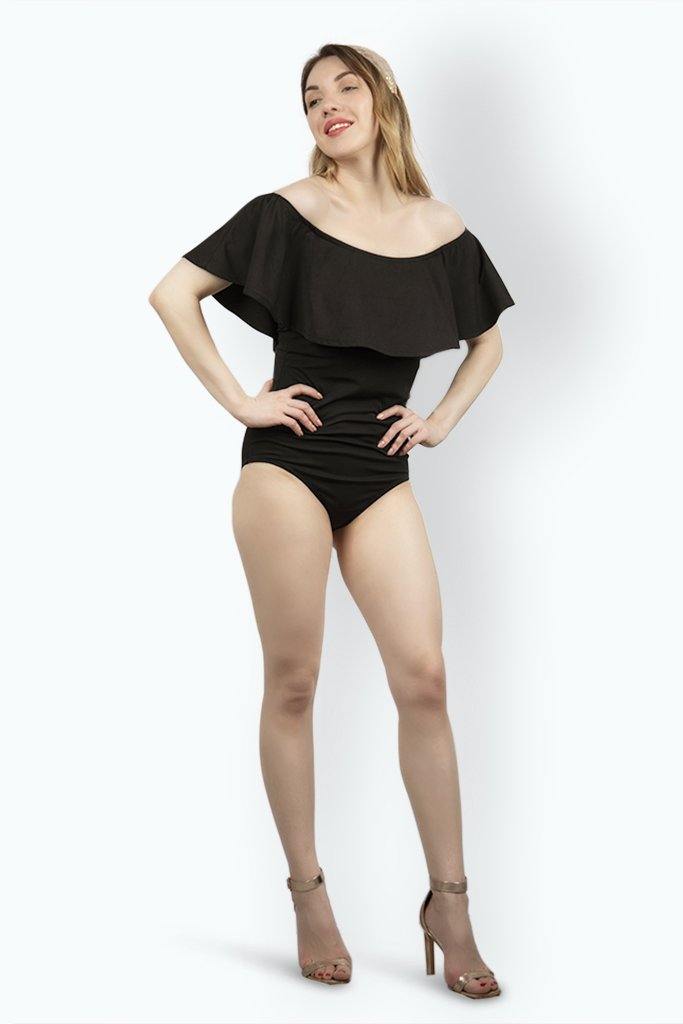 Pheme is the epitome of the effortless California girl. She's got style, toned shoulders to die for, and moves effortlessly between social media stardom at the beach to hot dates in the Hollywood Hills. But, you better not try to wear her clothes! She won't share that kind of fame with anyone. Everyone's eyes will be on you in this sexy, one-piece ruffle monokini. A flattering mid-rise bottom completes this dazzling swimsuit. Sexy elegance meets simplicity. Showing off your decolletage is effortless with this minimal one-piece, featuring an elegant ruffle detail on the top, adjustable shoulder straps, and a sheer, slinky bottom with "V" detail. Coming in hot, this one-piece is hot to trot! Featuring ruched detailing. The great fit and length of this swimsuit are shown off with a ruffle border on the exposed back.