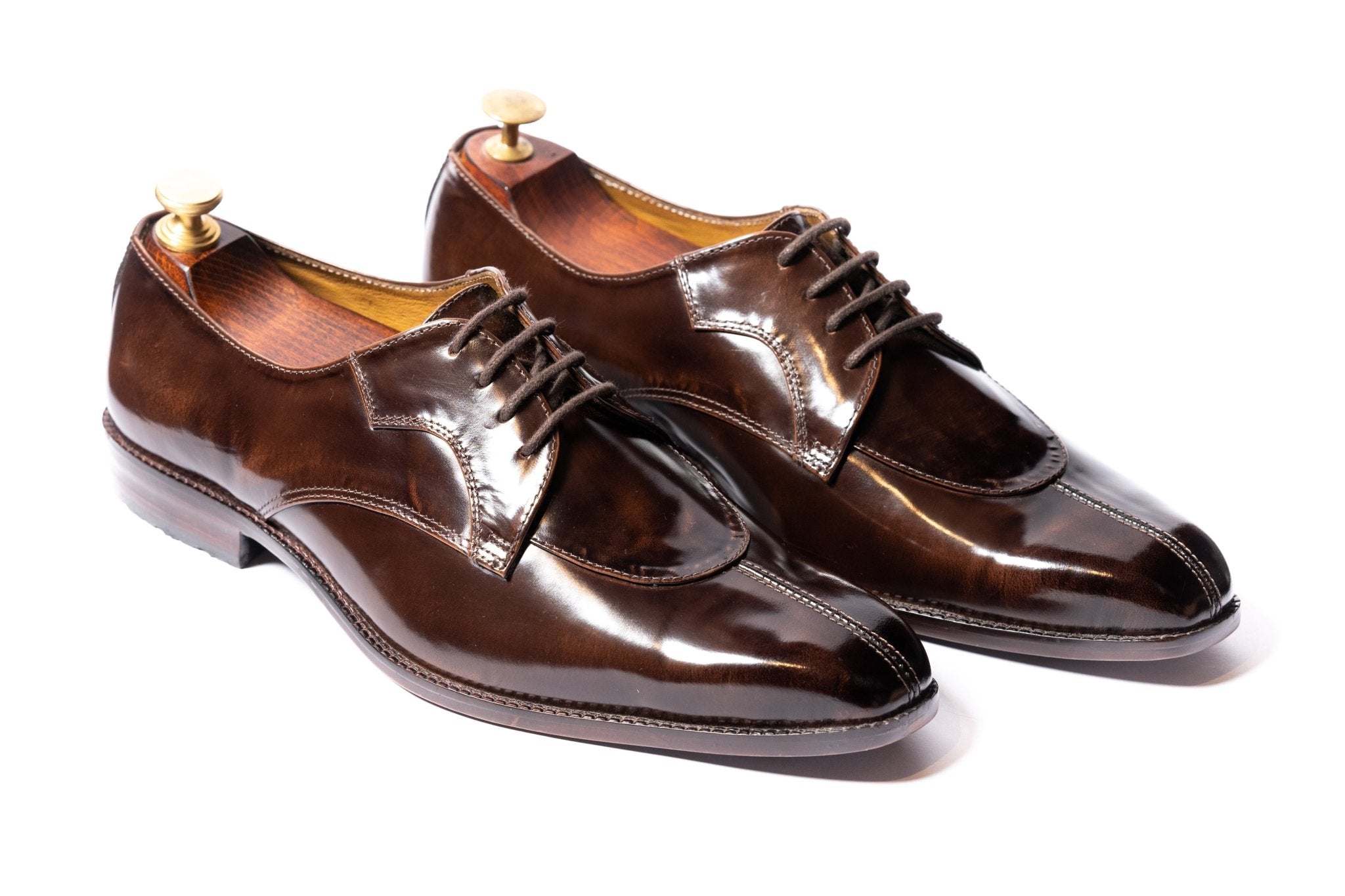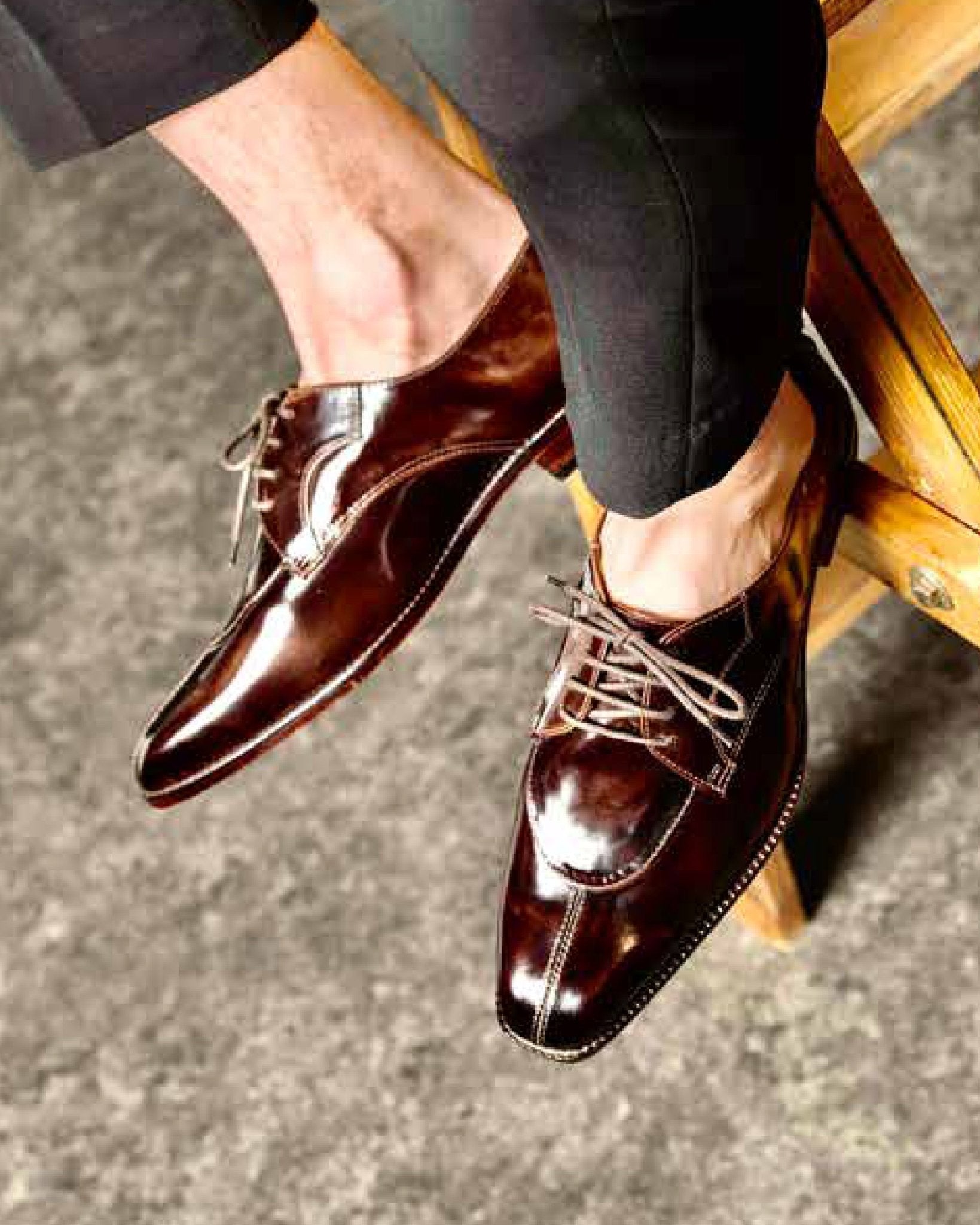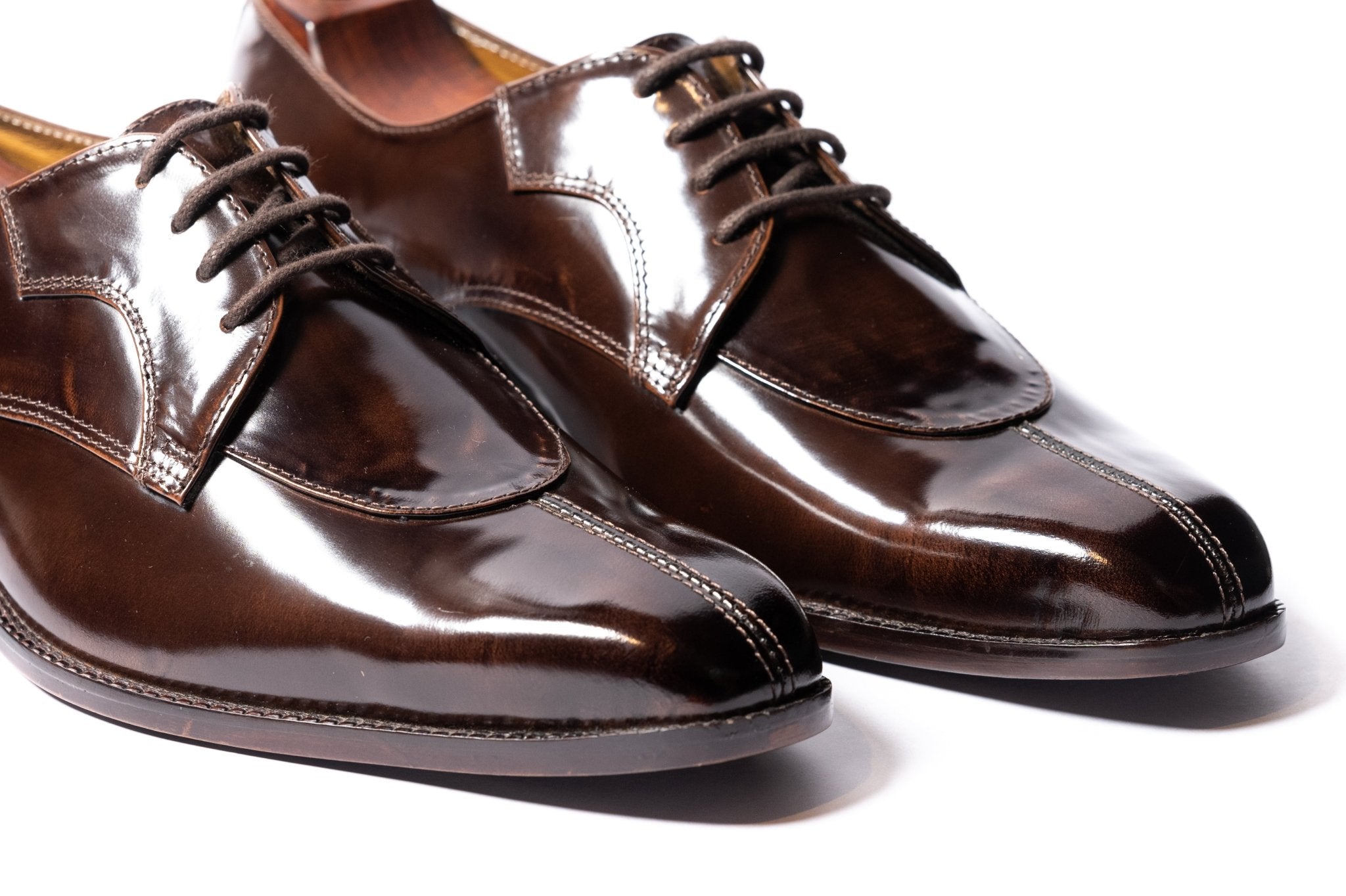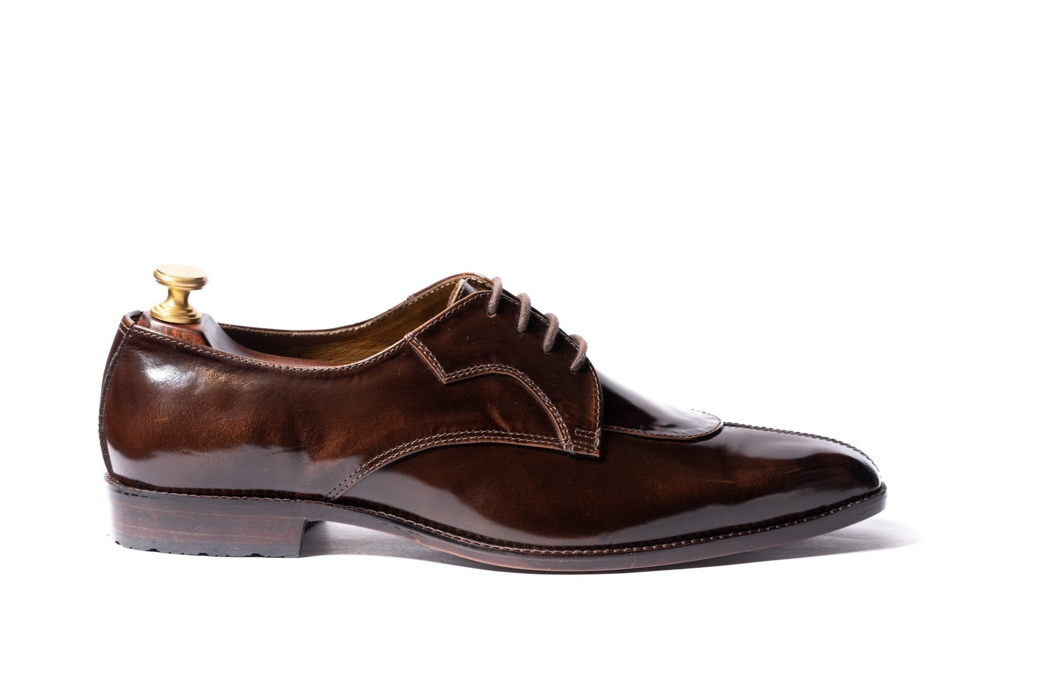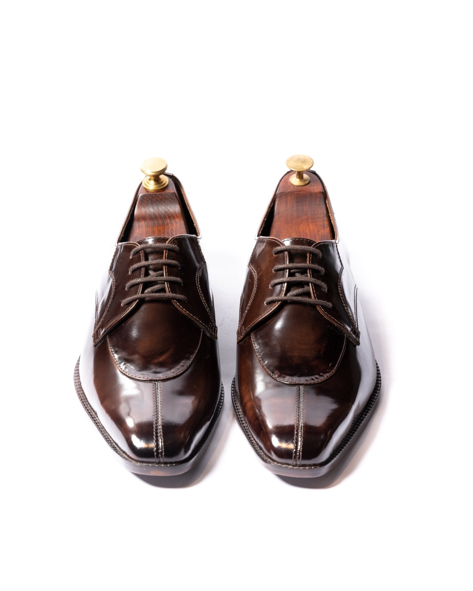 Derby made with 7 different pieces of brushed brown leather is unique in its category. Modern techniques of designing classic derby's is fun in today's fast changing fashion industry.
