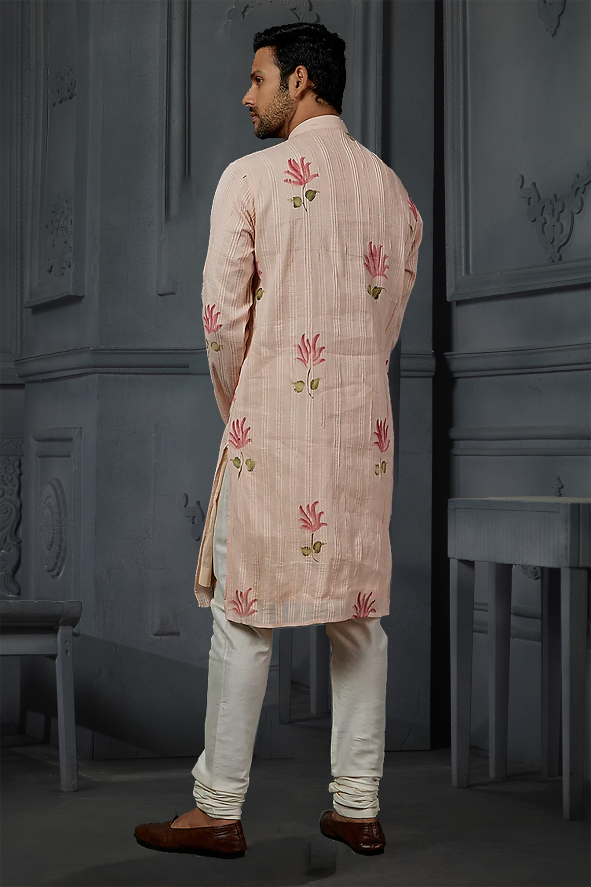 Pintex Brush Printed Kurta with Churidar.
