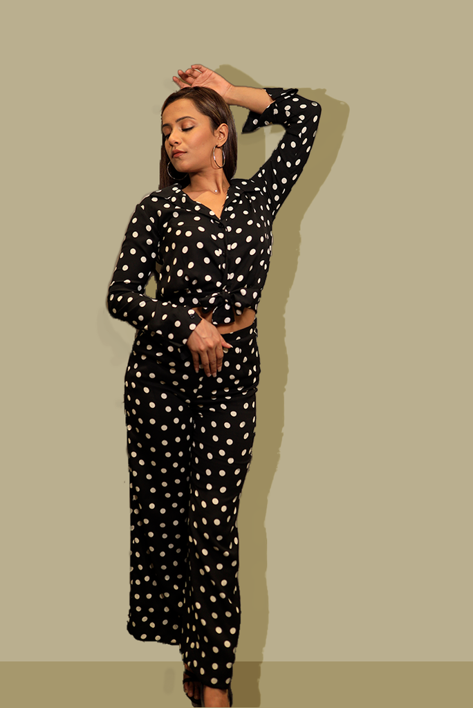 Collar Top with long sleeves and front button fastening.