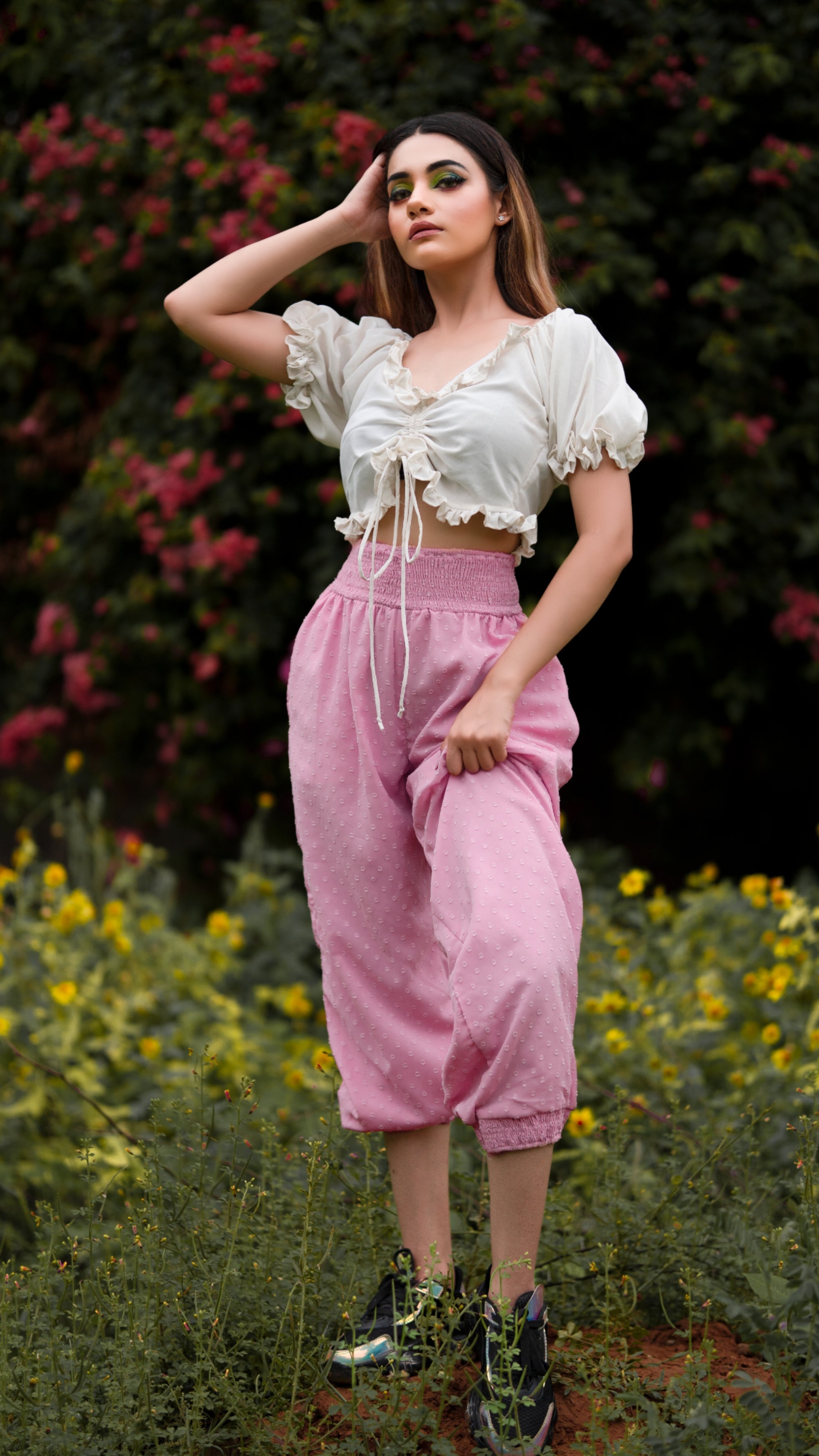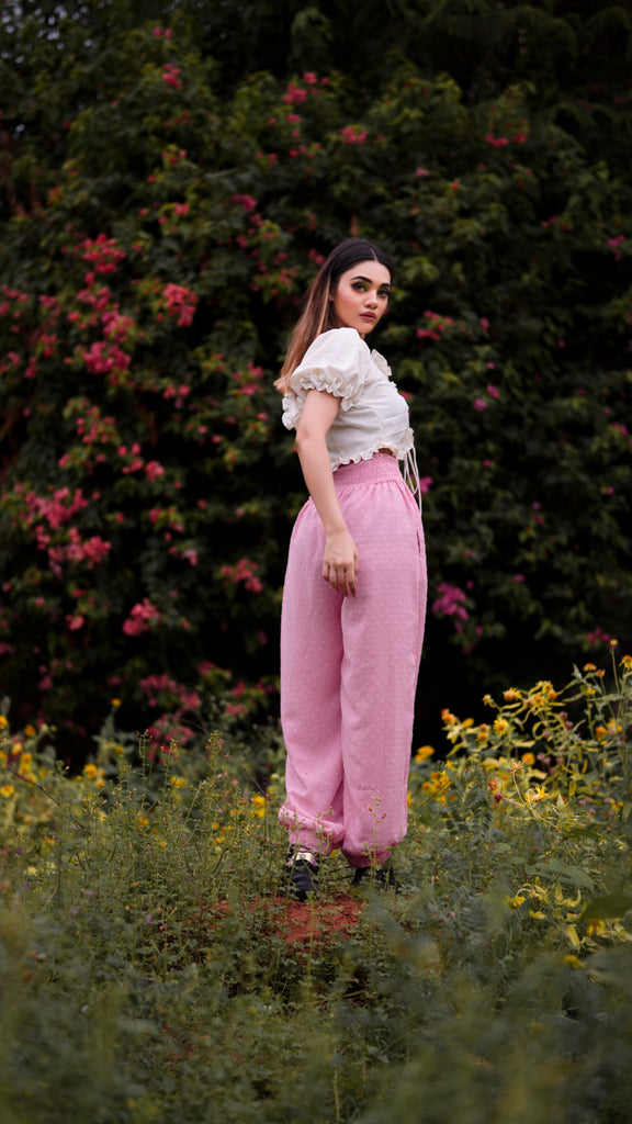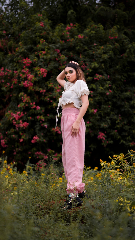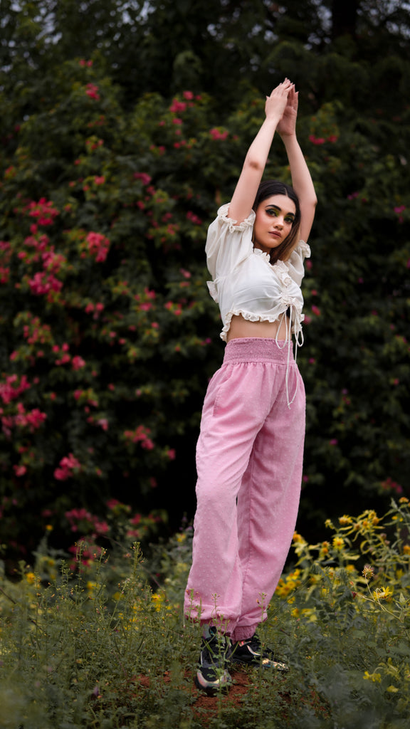 This very unique and stylish rose pink smocked joggers,is handcrafted with very soft and luxury fabric, it features side pockets, elasticated smocked hems and broad smocked waistband which acts as a perfect tummy tucker.