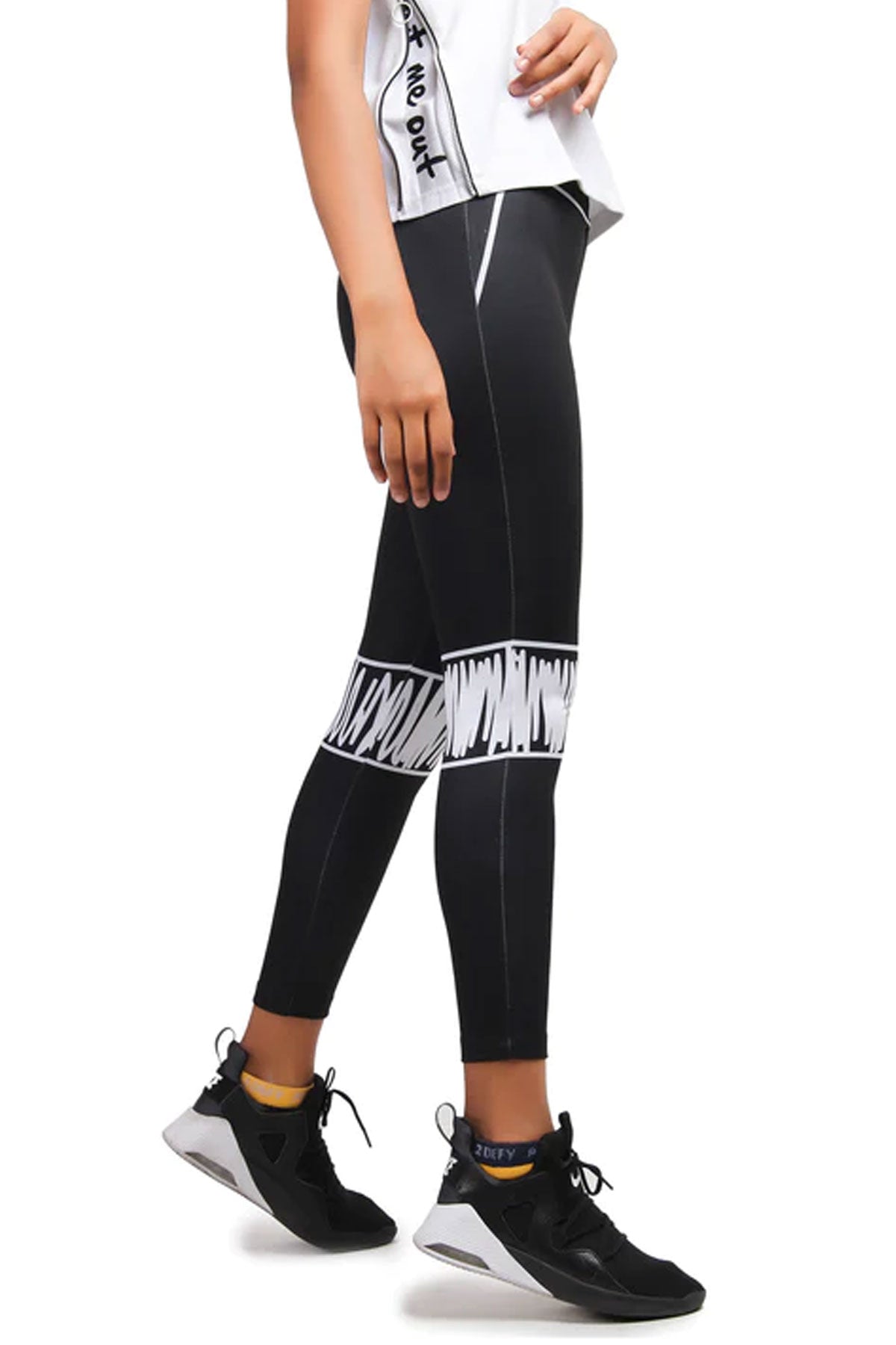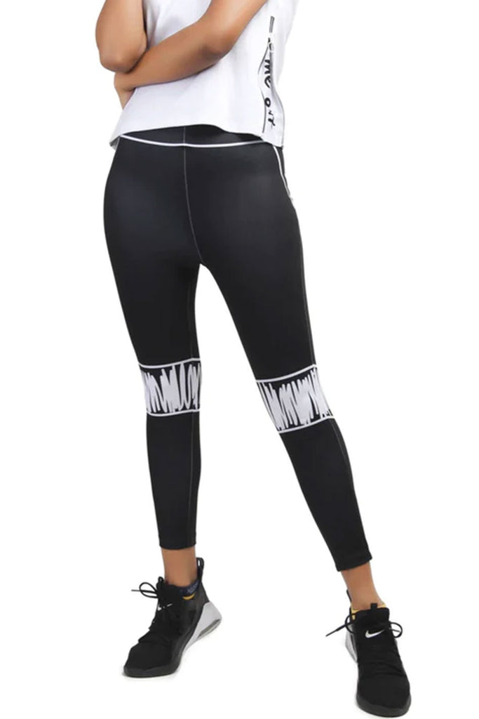 Neoprene leggings in black. High-rise. Ripps, waistband and pockets printed in white. Tonal stitching.