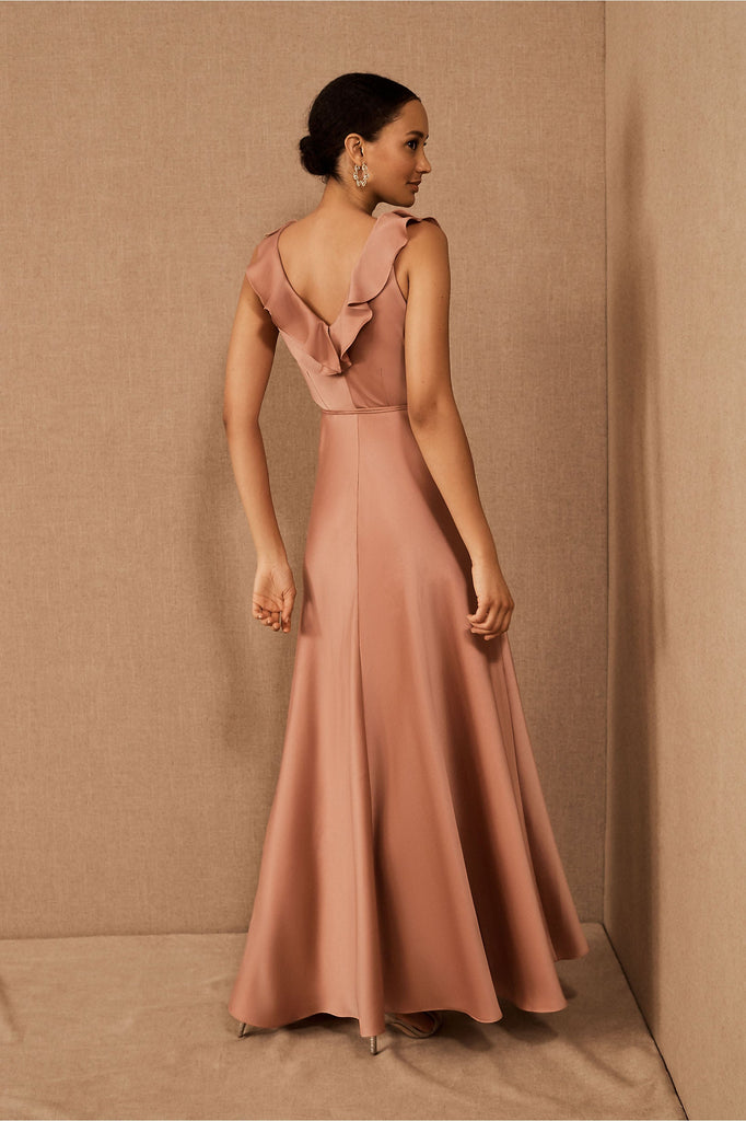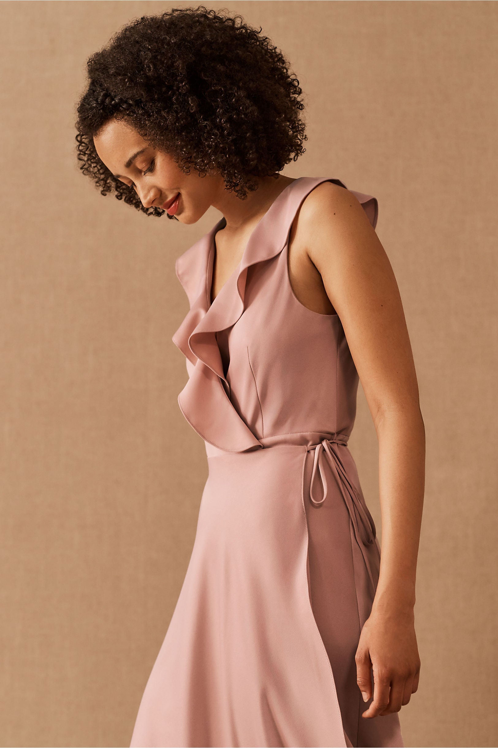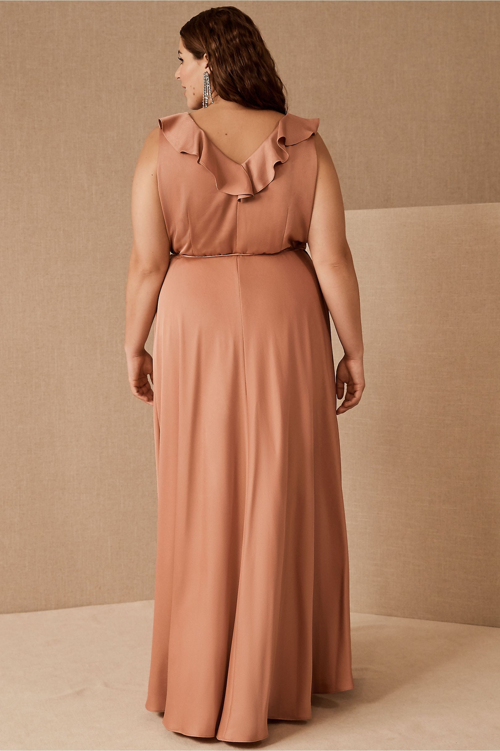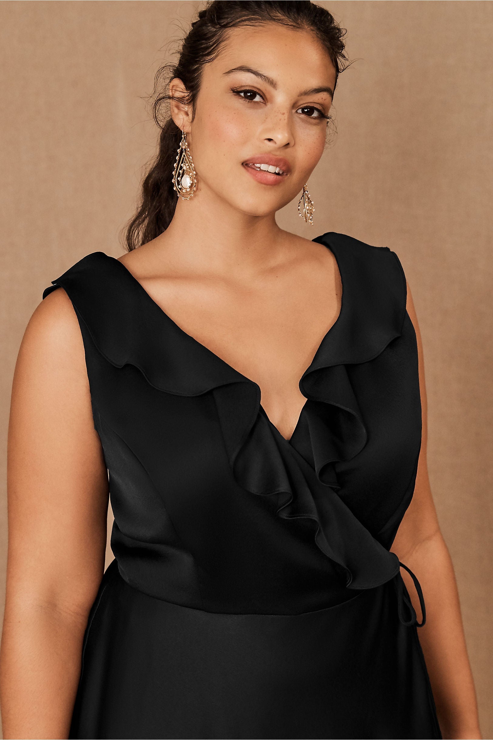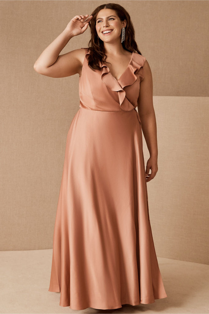 A ruffled neckline pours into a silky wrapped silhouette as a tie detail tops the flowy, floor length skirt. Tie closure Polyester; polyester lining