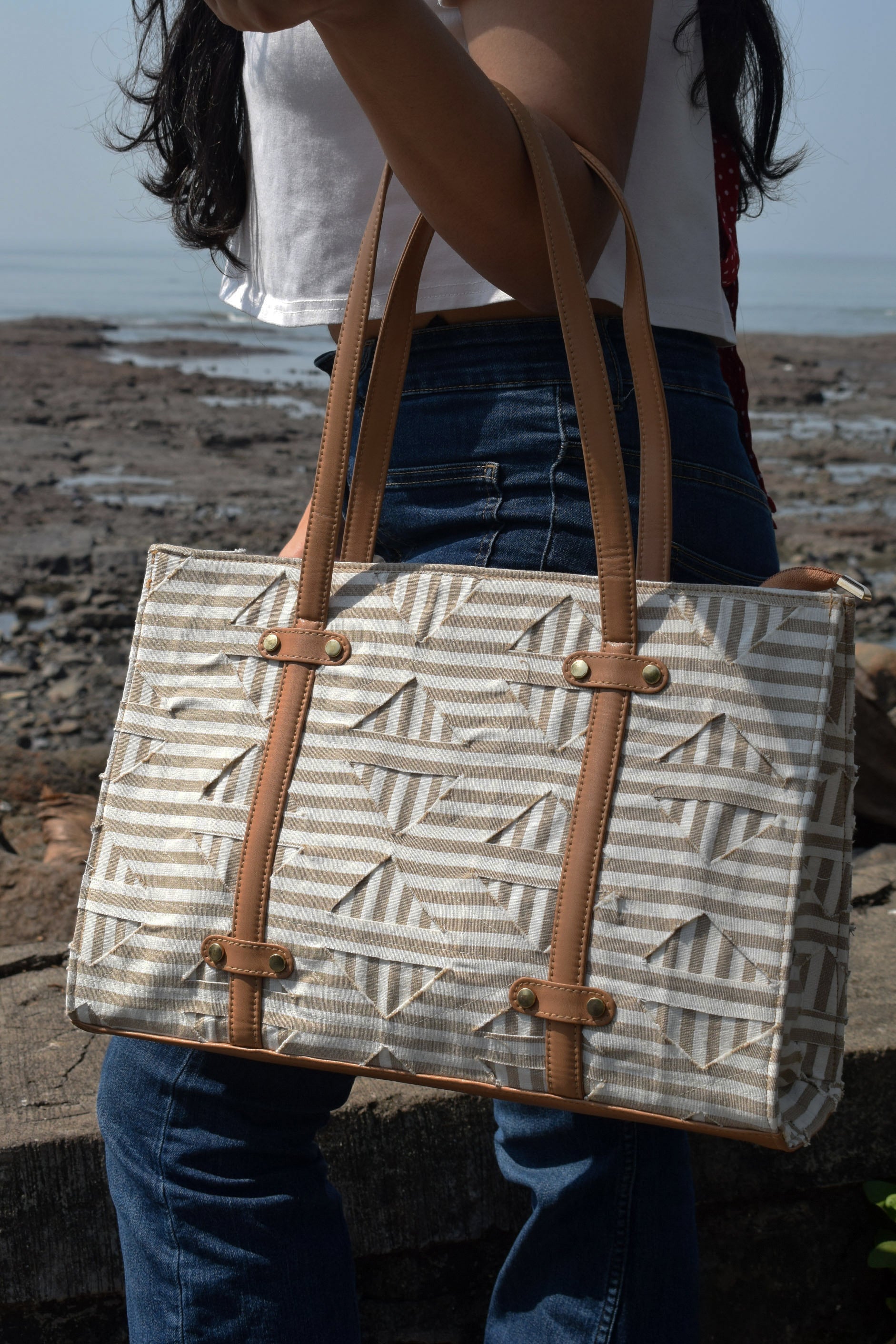 Simple yet classy. Our unique cutwork canvas handbag with leather straps and accents can turn a casual outfit into something classy and gorgeous. Perfect for both leisure and a professional outing.