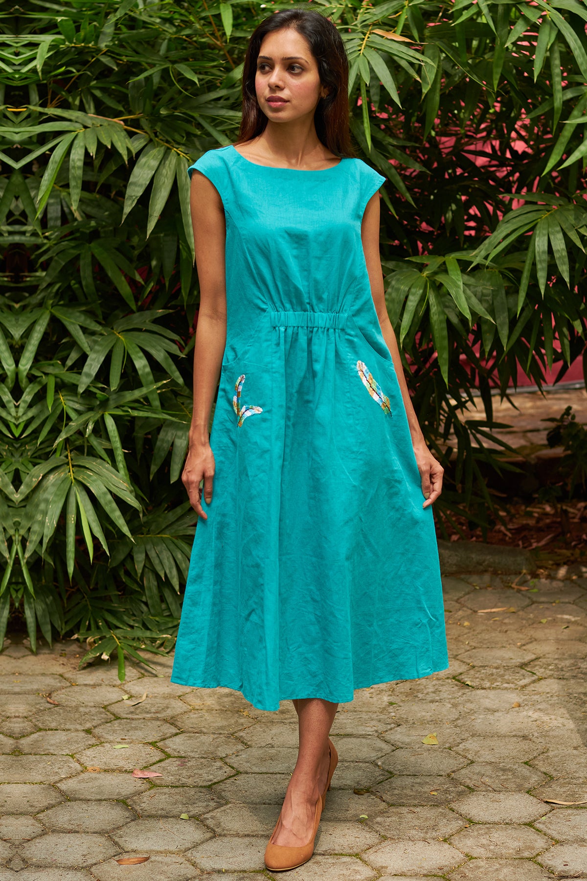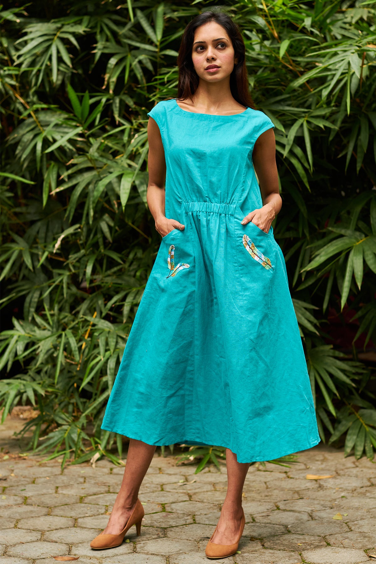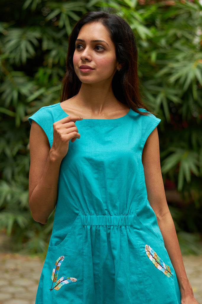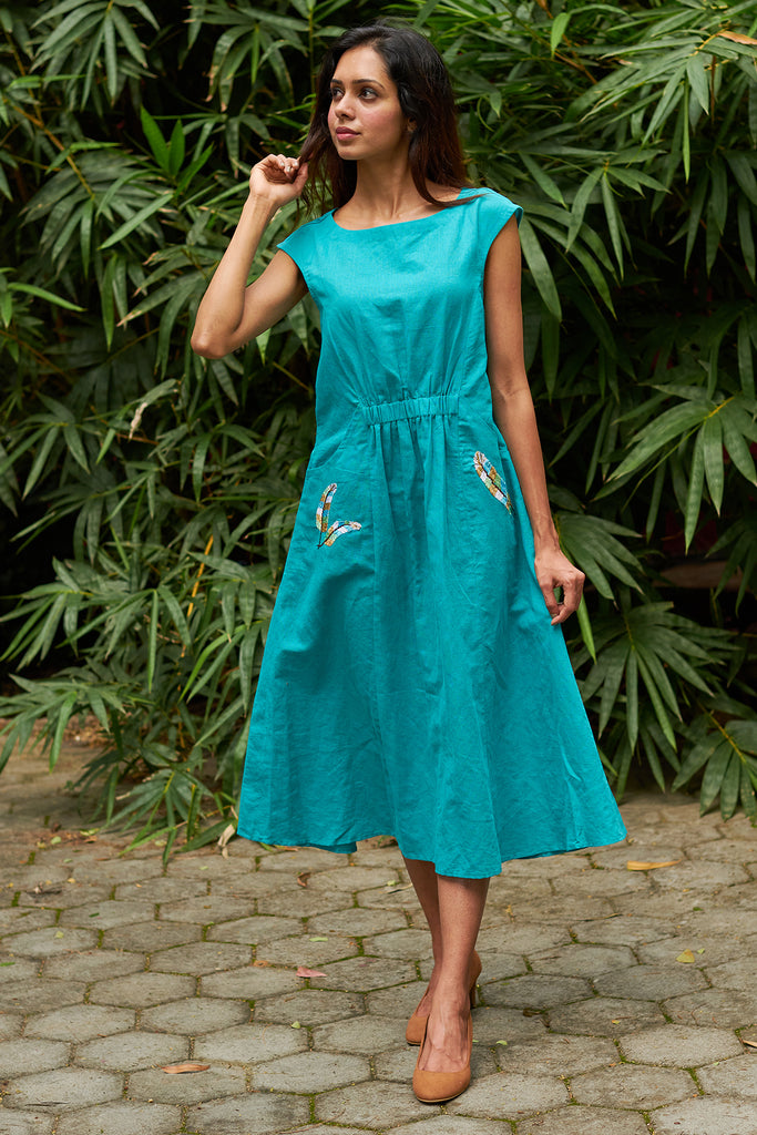 Its a centre board elasticated gathers with hand embroidery on pockets.