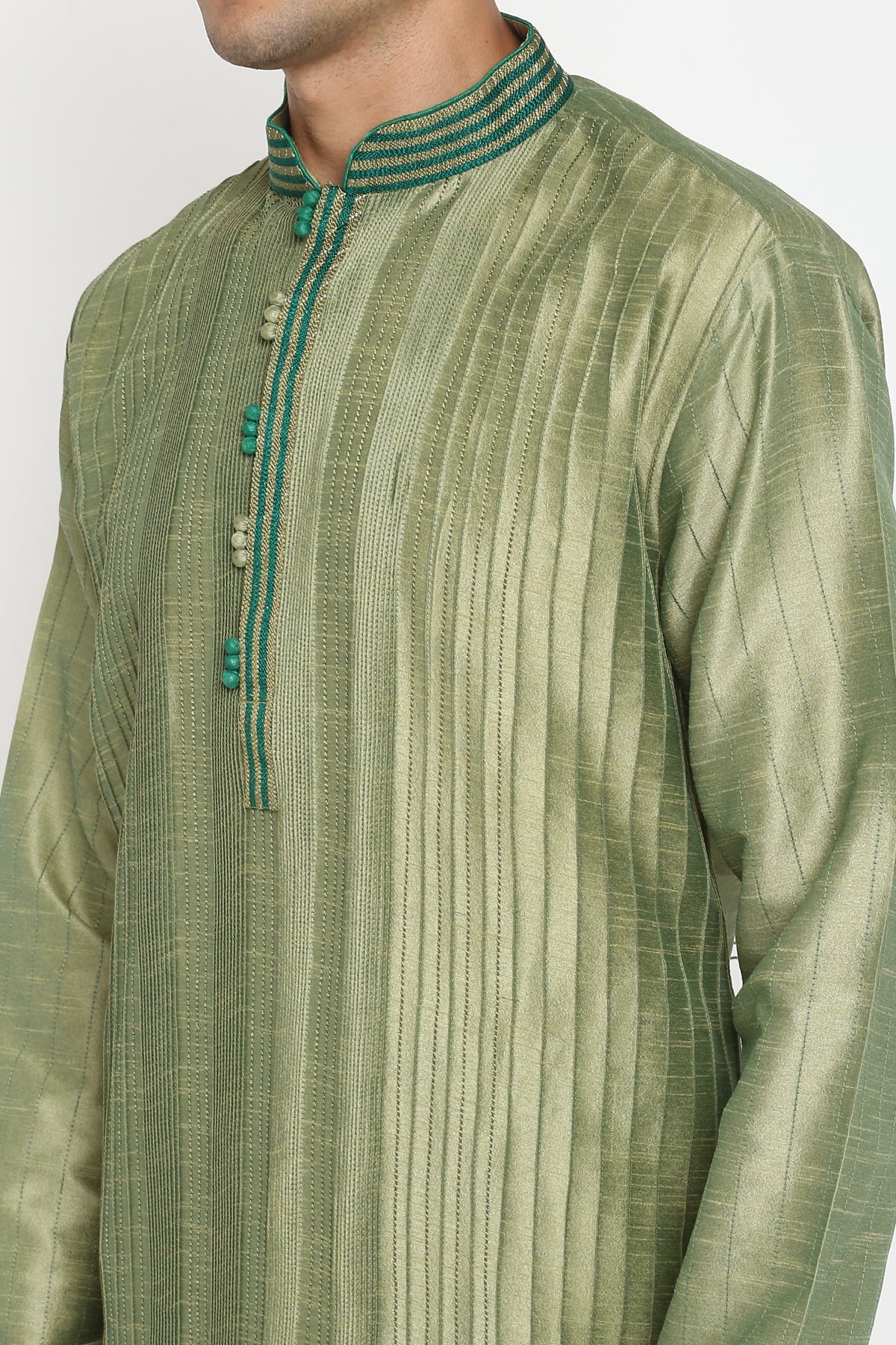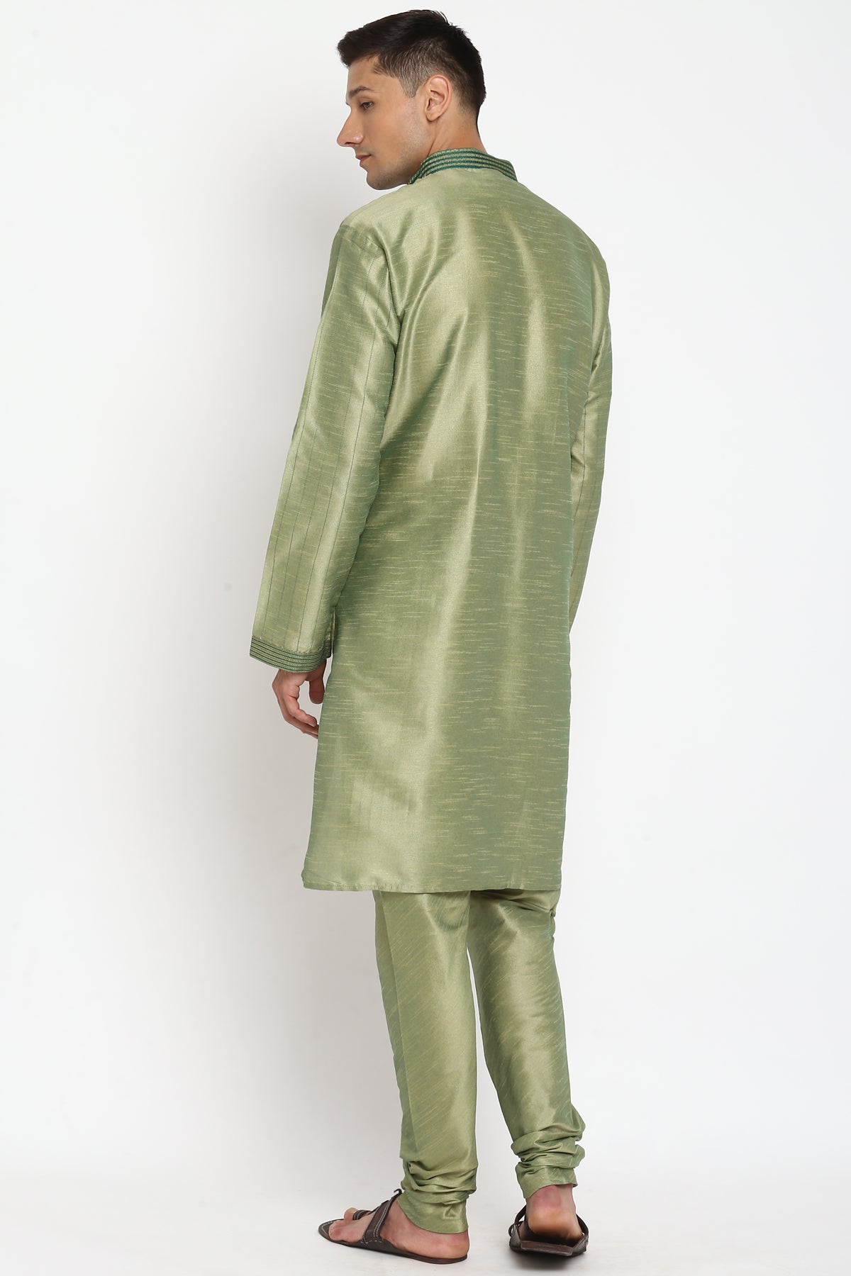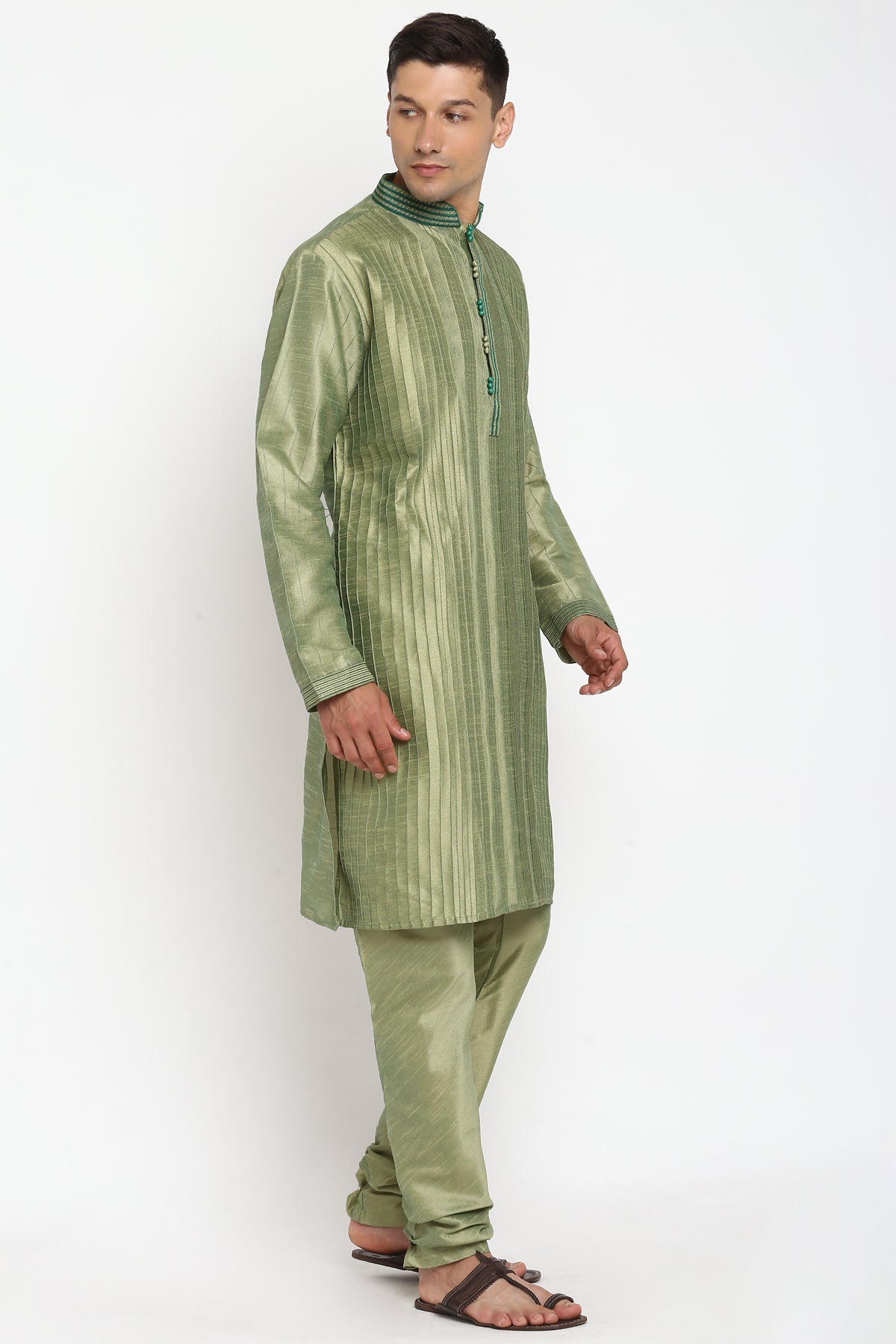 A class apart. This Matka Silk Kurta Set in a tangy green is a royal addition to your festive outfit collection this season, crafted for sheer comfort and style.