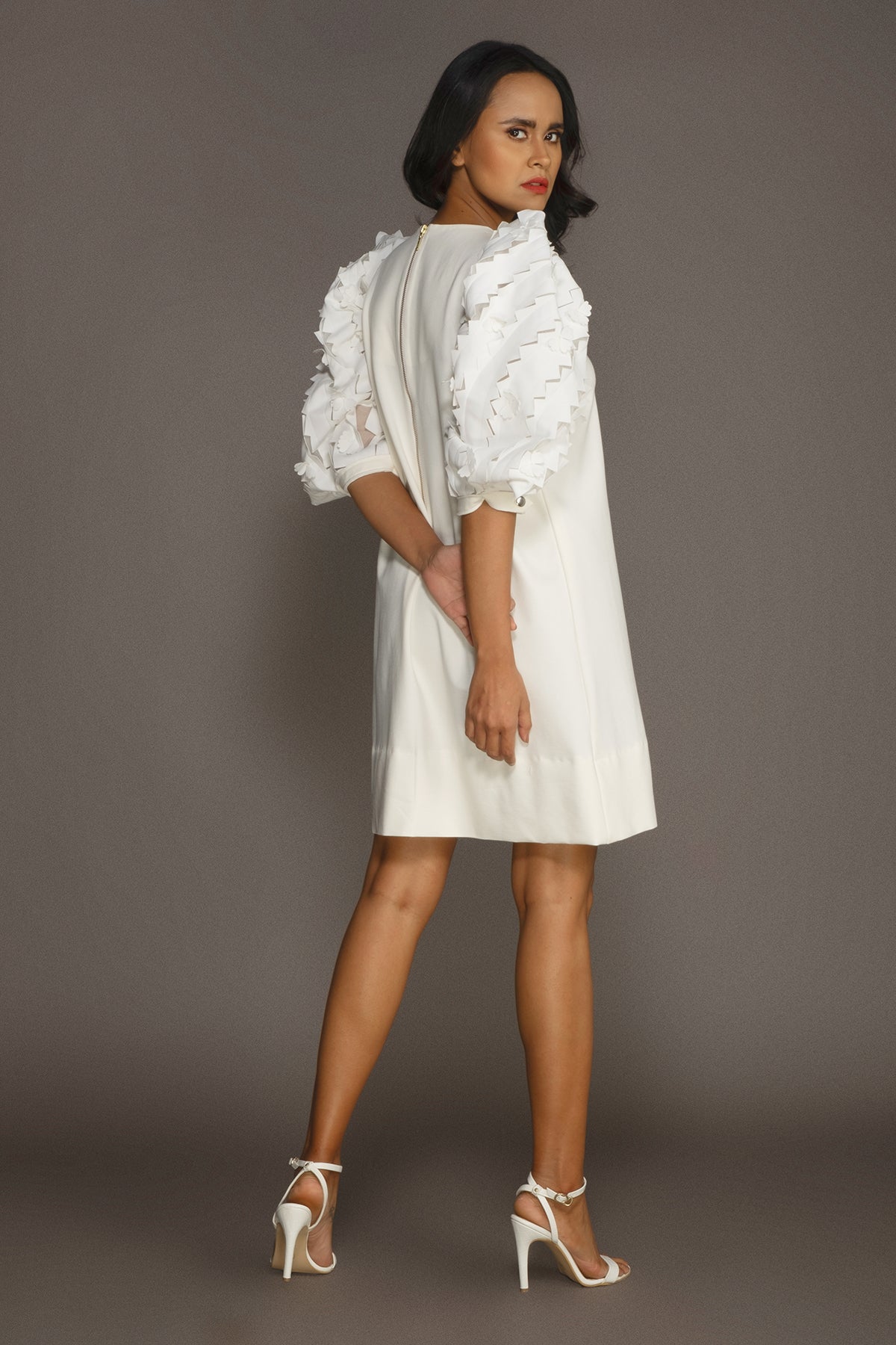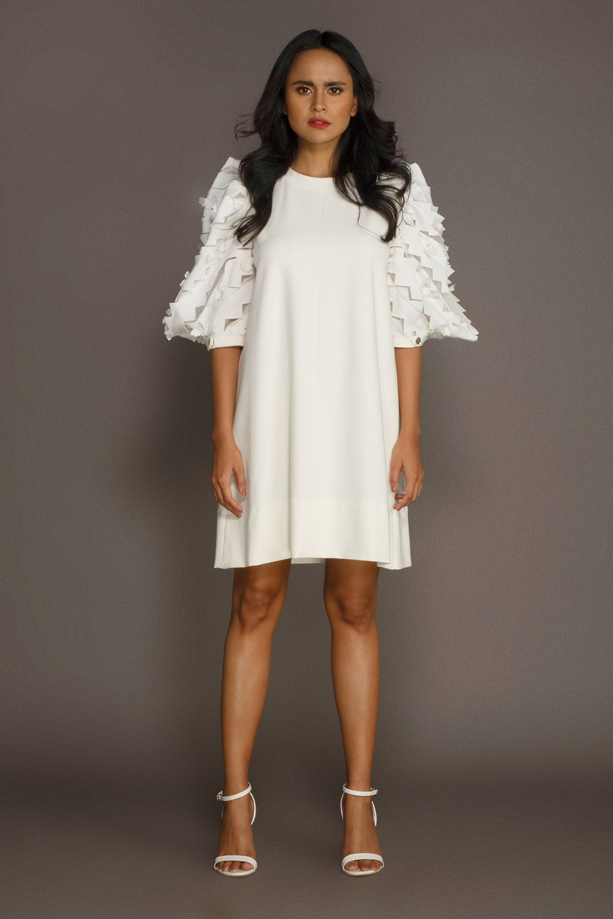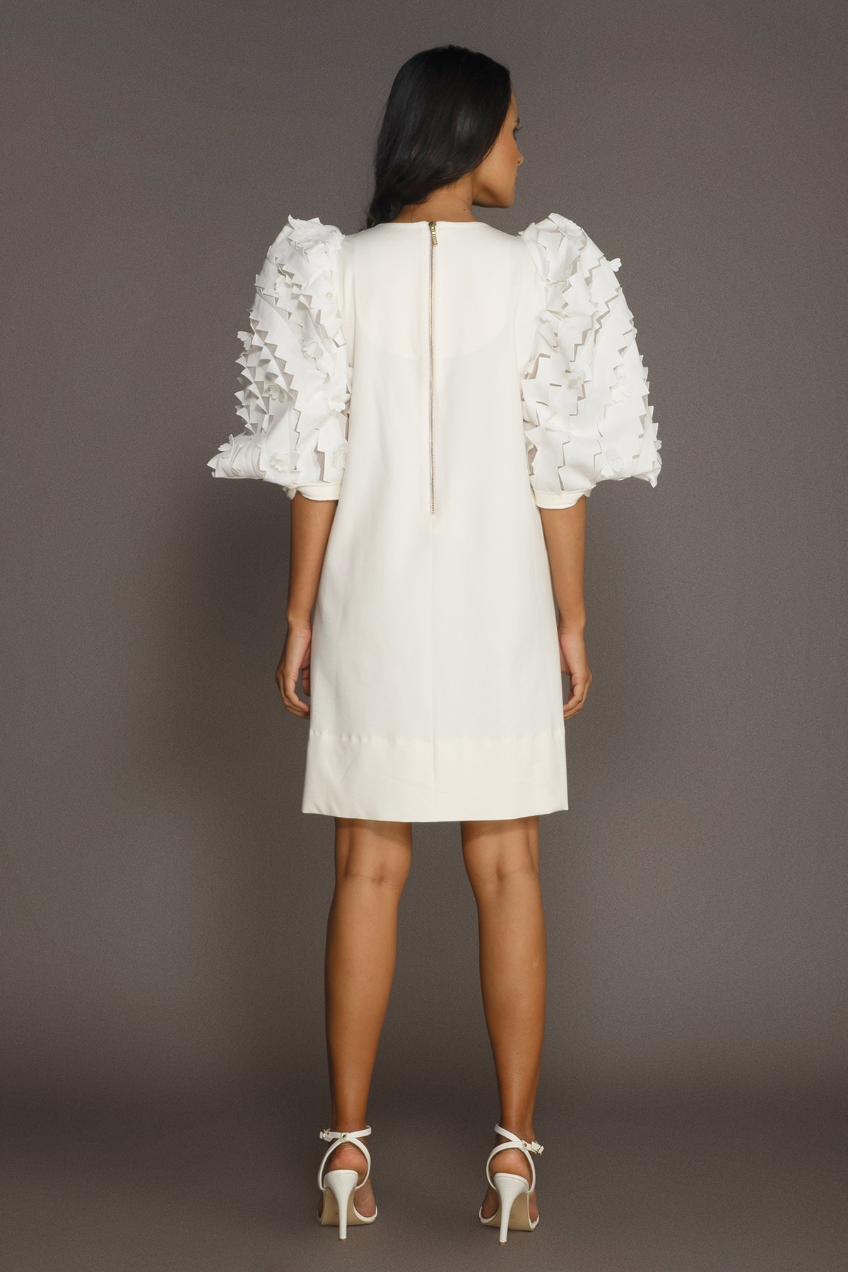 Shift Dress with Embroidered Cutwork Sleeves