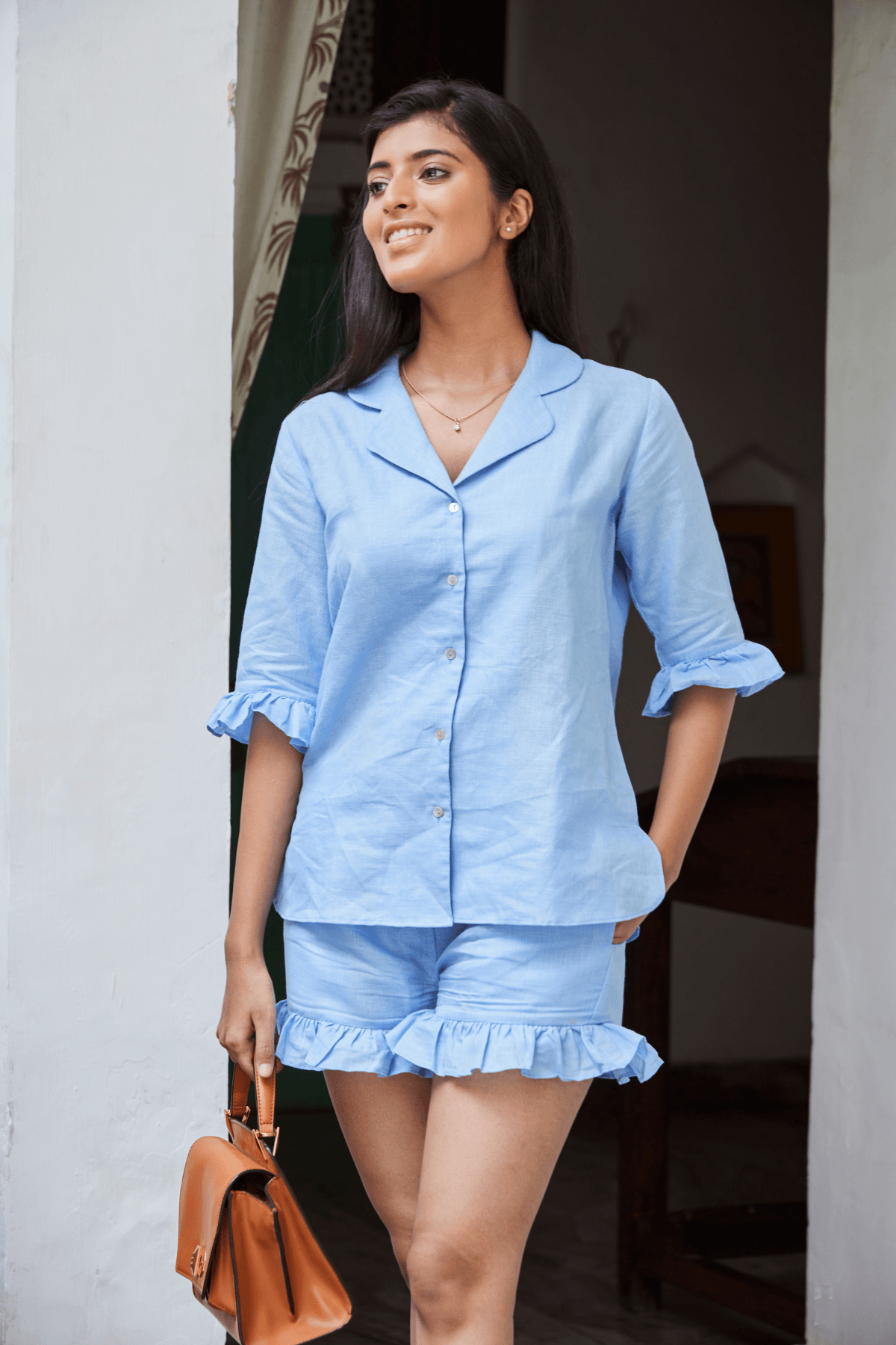 This set includes a Top, Frilled Shorts, Head ribbon, Face mask & a Pouch.
