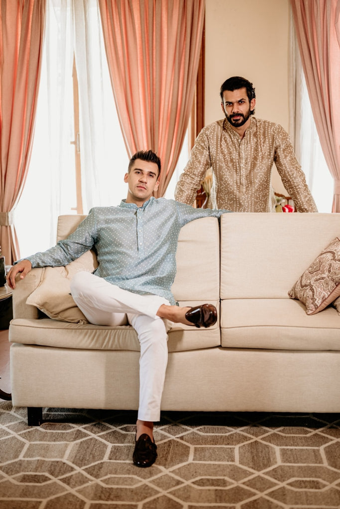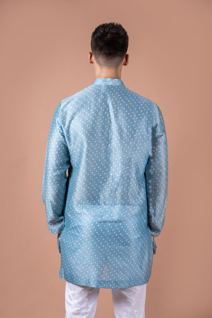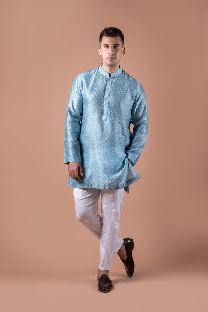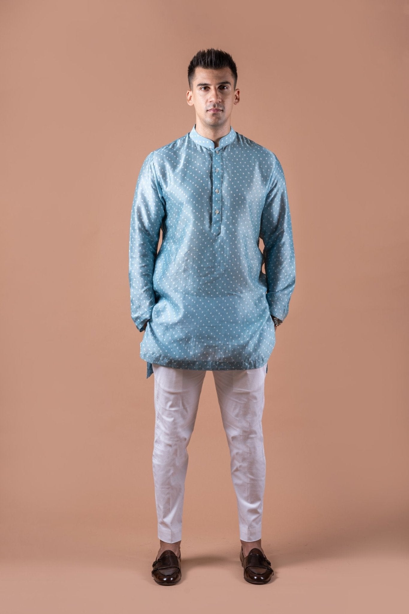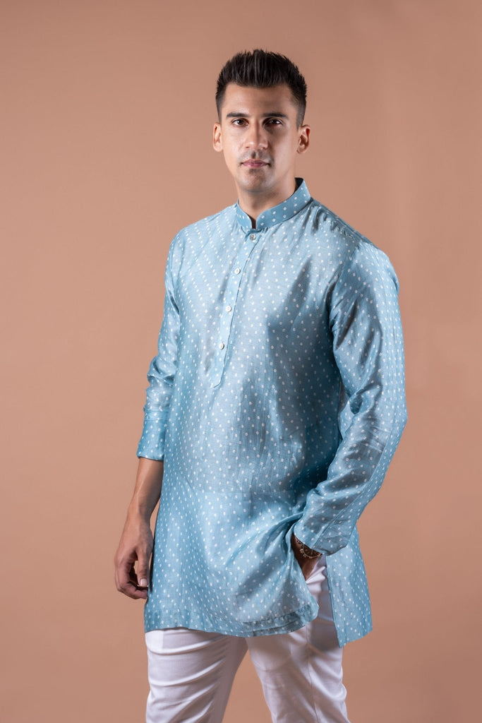 Classic kurta with white bandhani pattern enhances the shine of the kurta. A perfect blend of simplicity and style.