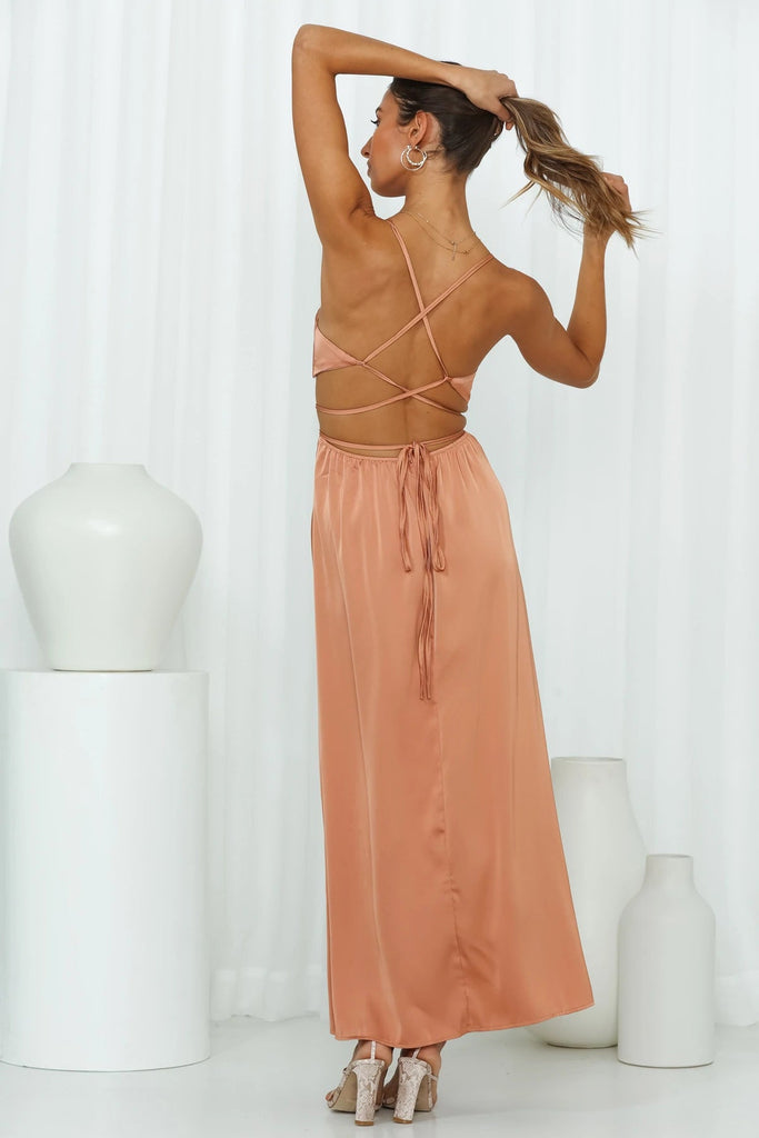 We DEFS see this dress in your future. The Sky maxi dress is made of a lightweight luxe satin fabric, this must-have midi dress exudes elegance with its romantic cowl neckline and a fun open back detail. Style yours with mules and gold jewellery.