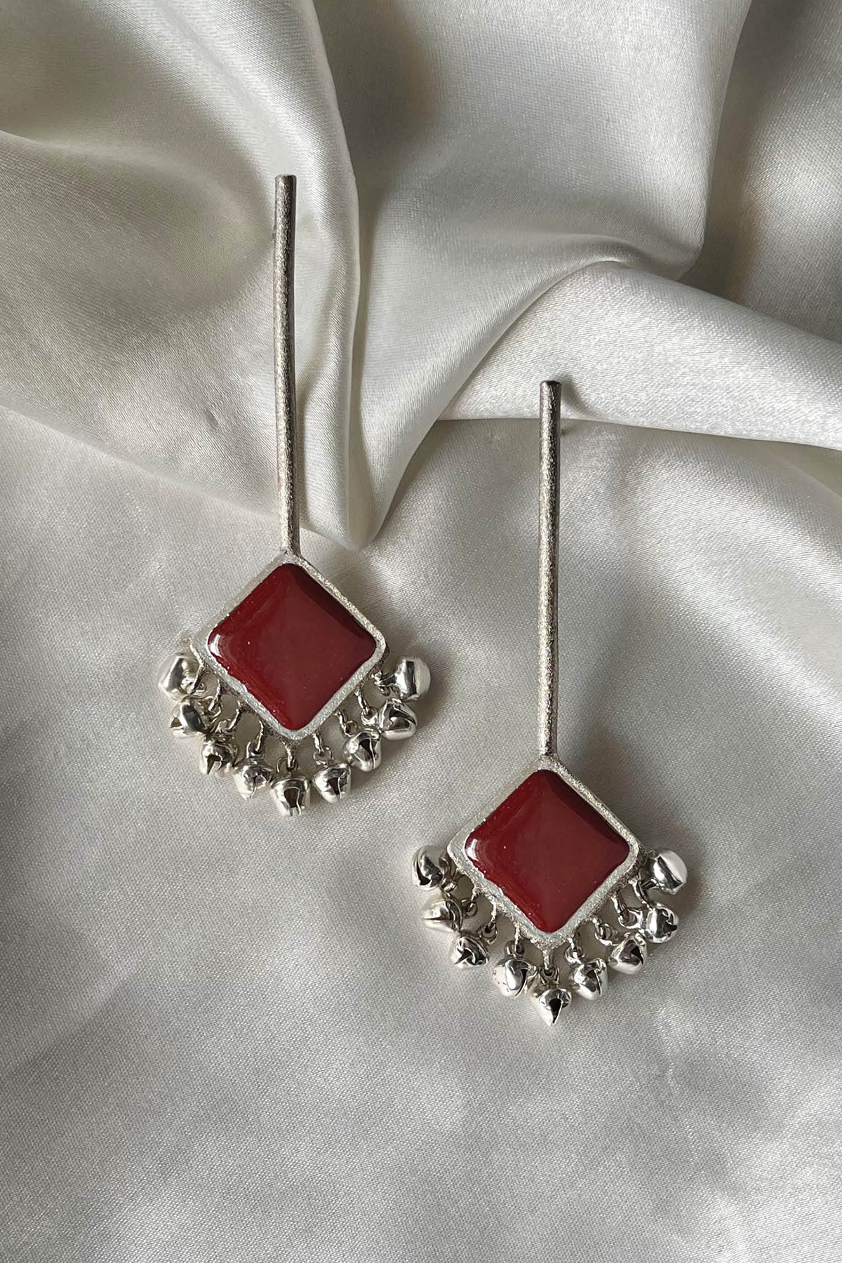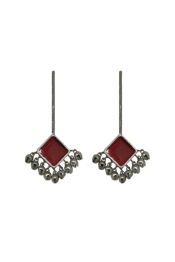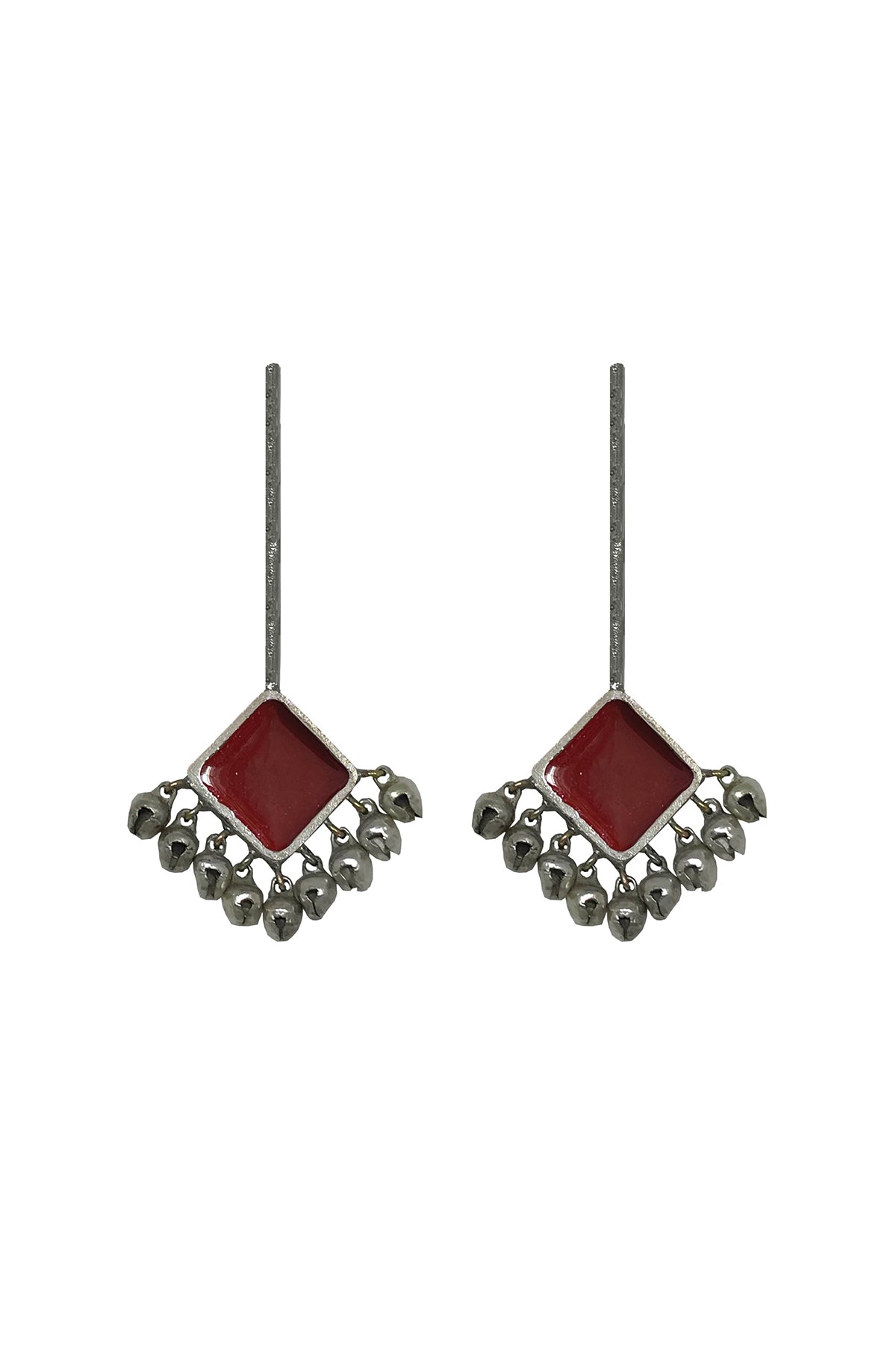 These beautiful pair of earrings are handcrafted to perfection using fine quality brass, ghungroos and navy blue enamel with light silver plating on it. Traditional look with modern simplicity is what these earrings has to offer.