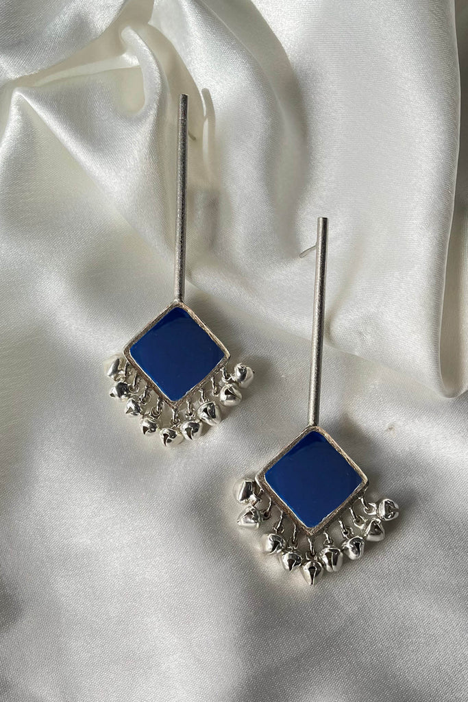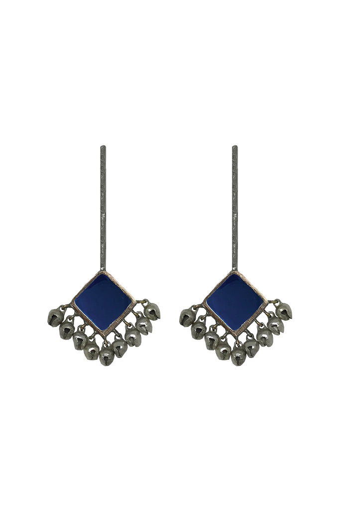 These beautiful pair of earrings are handcrafted to perfection using fine quality brass, ghungroos and navy blue enamel with light silver plating on it. Traditional look with modern simplicity is what these earrings has to offer.