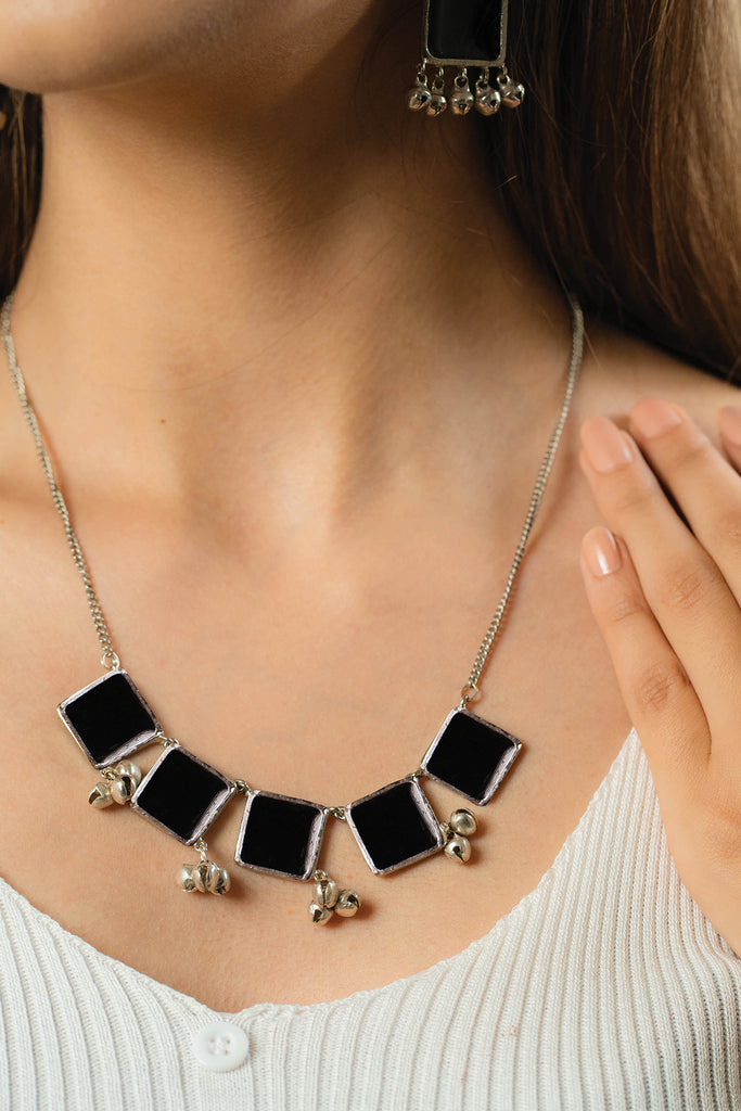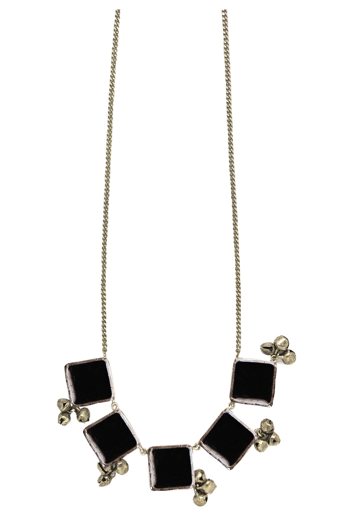 This neckpiece is handcrafted to perfection using fine quality brass, ghungroos and black enamel with light silver plating on it. Traditional look with modern simplicity is what this neckpiece has to offer.