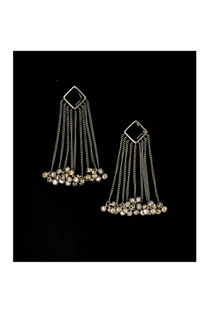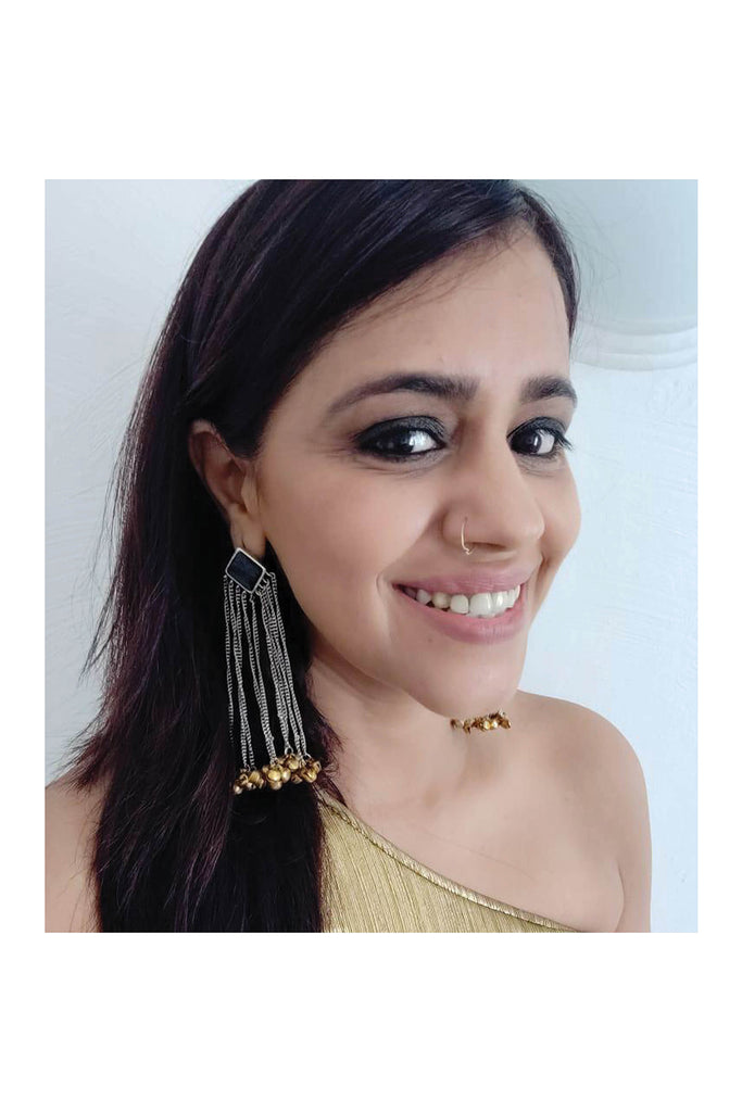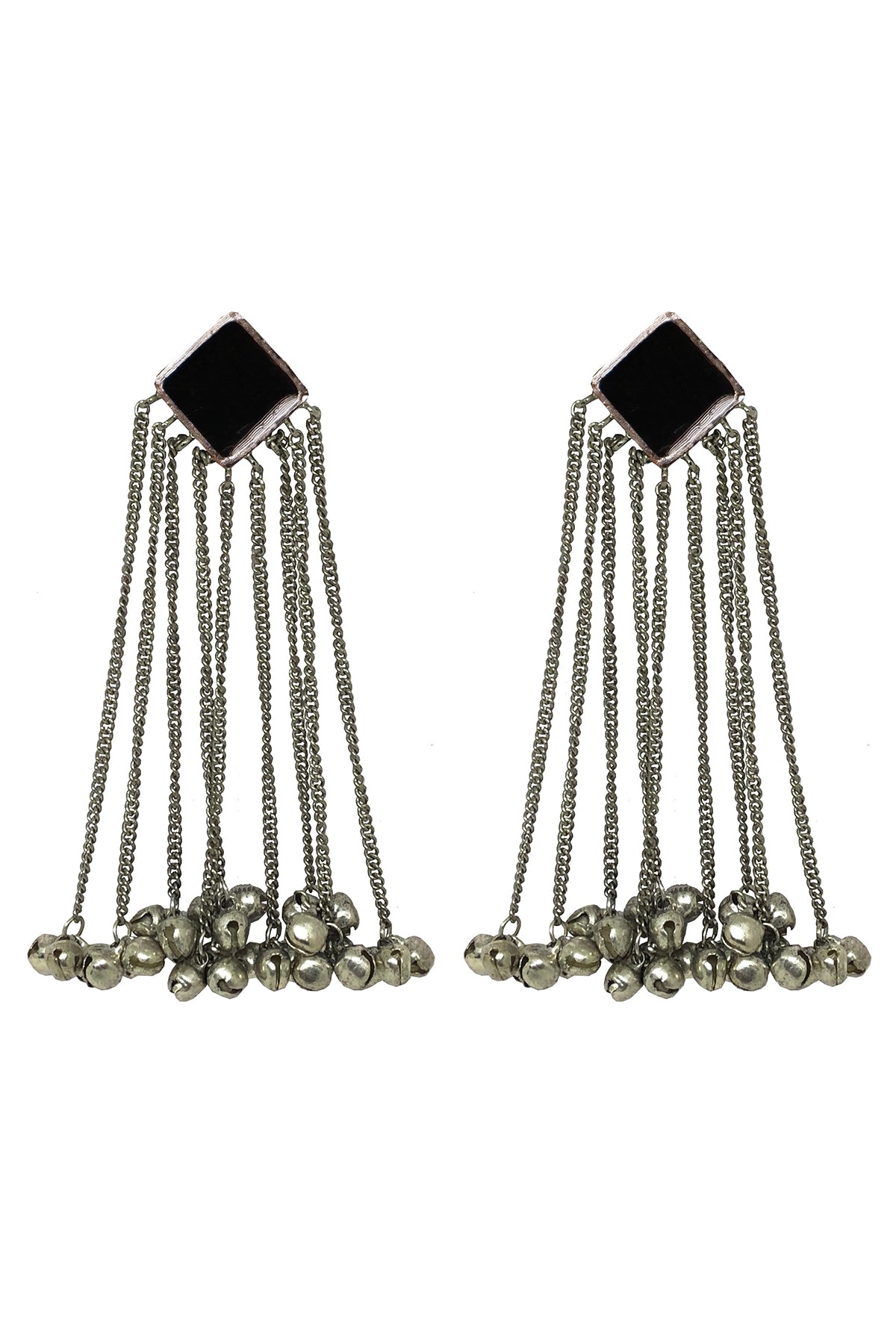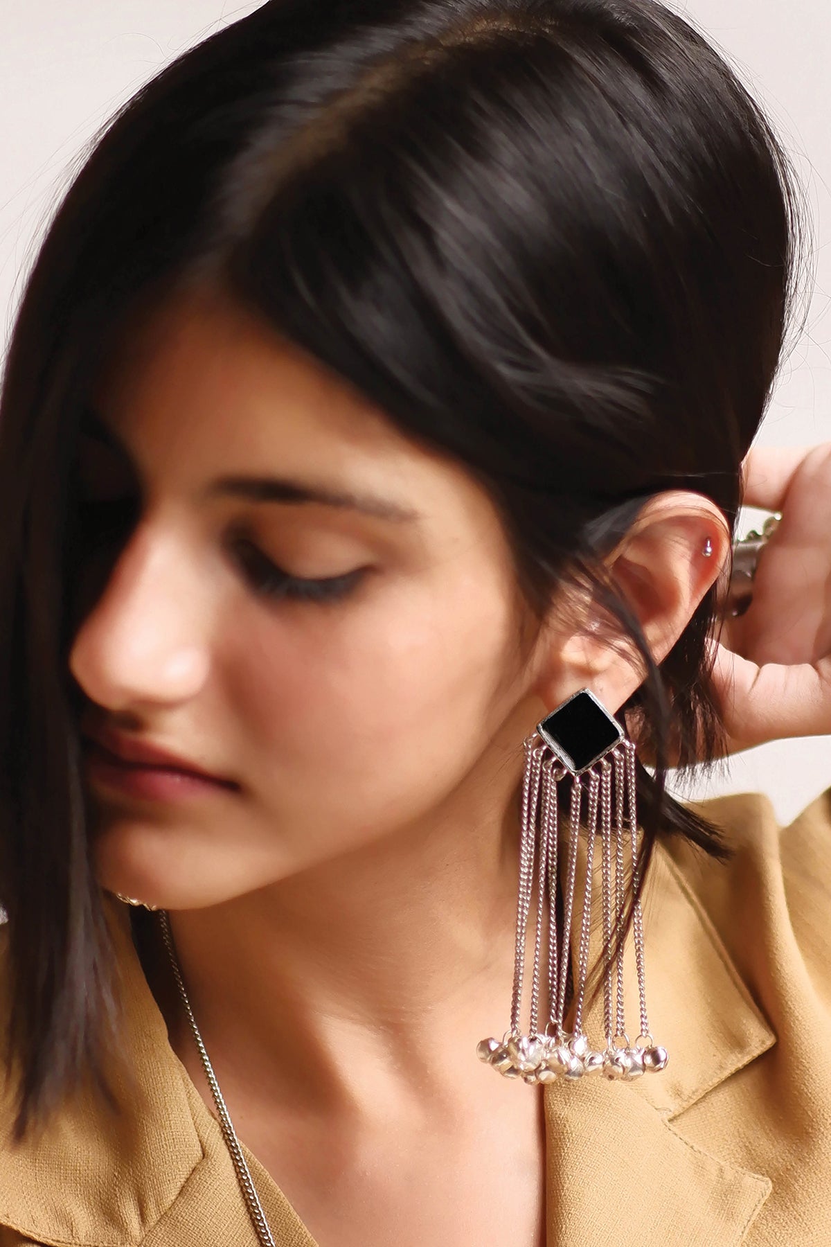 These beautiful pair of earrings are handcrafted to perfection using fine quality brass, ghungroos and black enamel with light silver plating on it. Traditional look with modern simplicity is what these earrings has to offer.