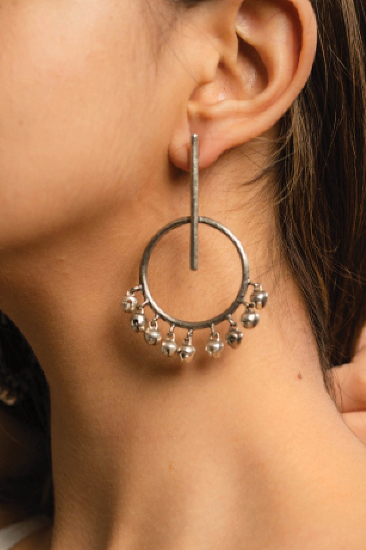 These beautiful pair of earrings are handcrafted to perfection using fine quality brass and ghungroos with light silver plating on it. Traditional look with modern simplicity is what these earrings has to offer.