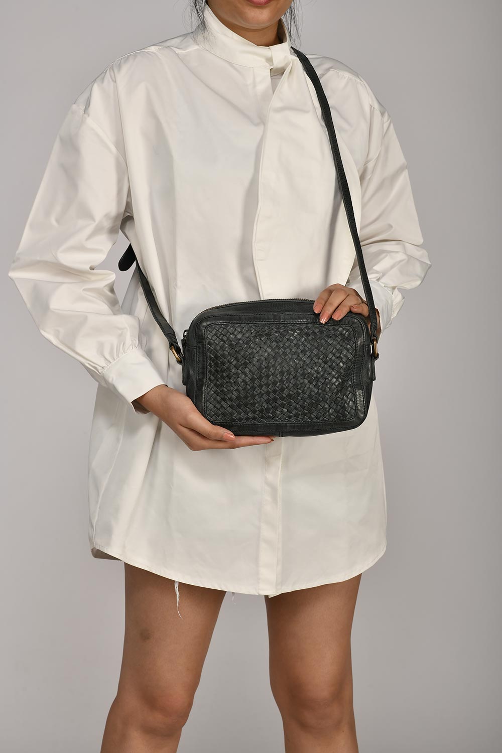 One can never go wrong with blue! This bag is as blue as it could be. It also minimizes the impact of its production on the environment. As sling bags are marking the new age of design and fashion, this bag is crafted out of sustainable cowhide leather and is vegetable tanned. Also, the crisscross weaving design is to die for!