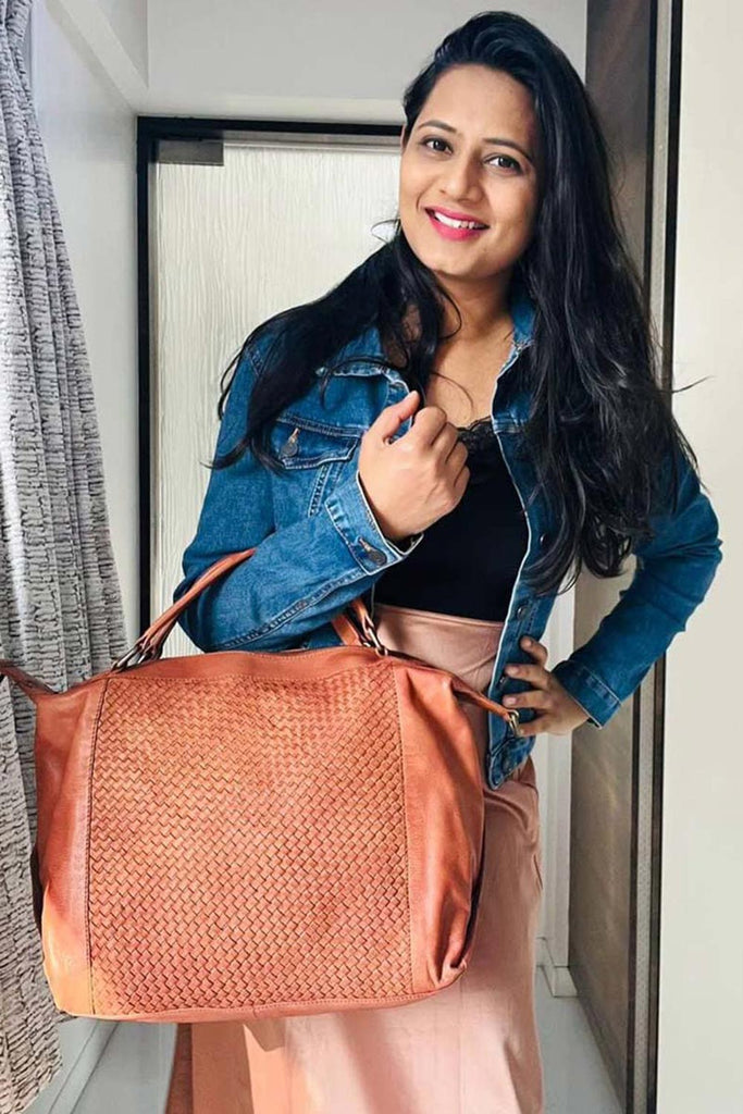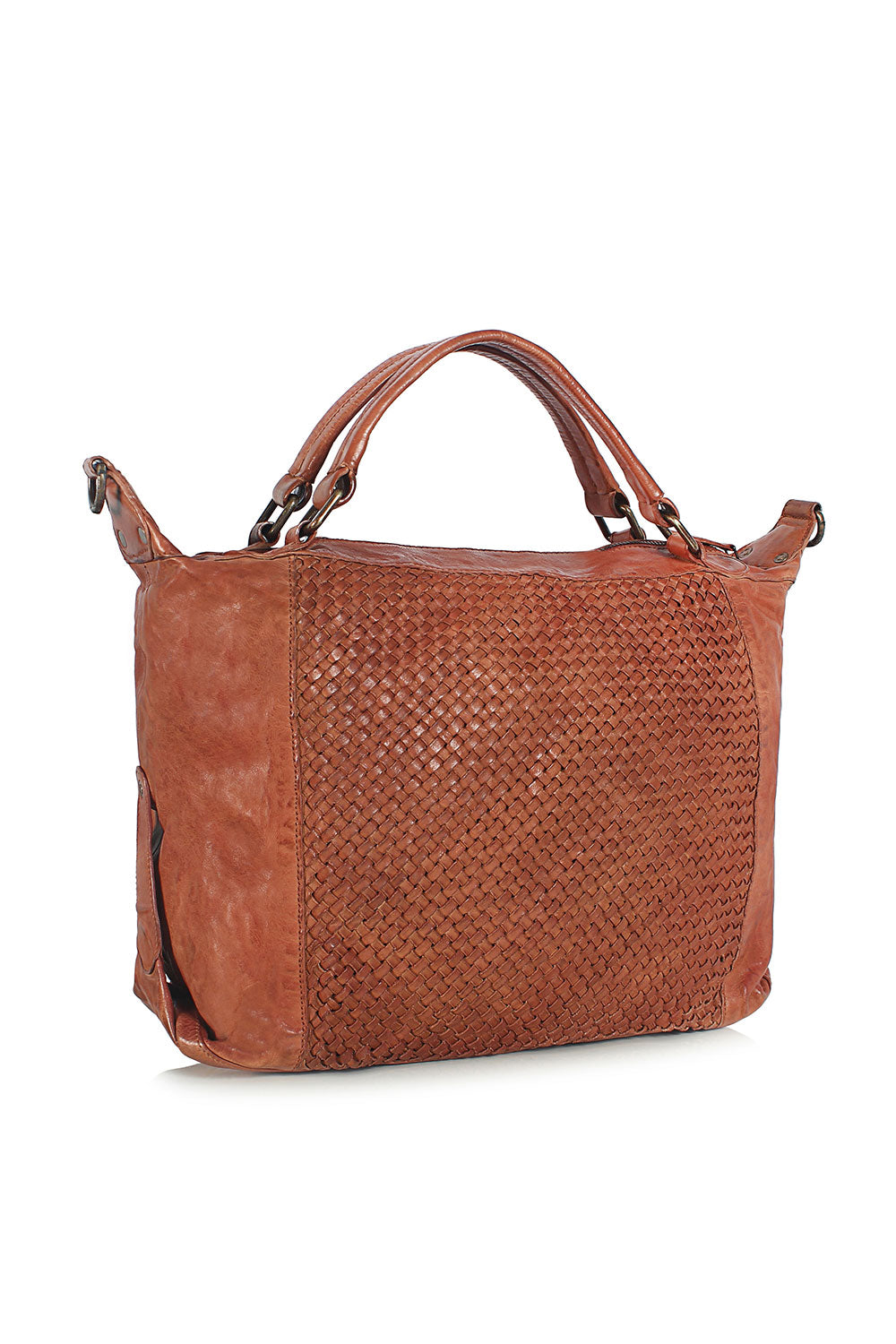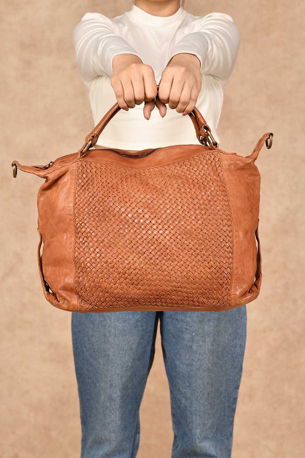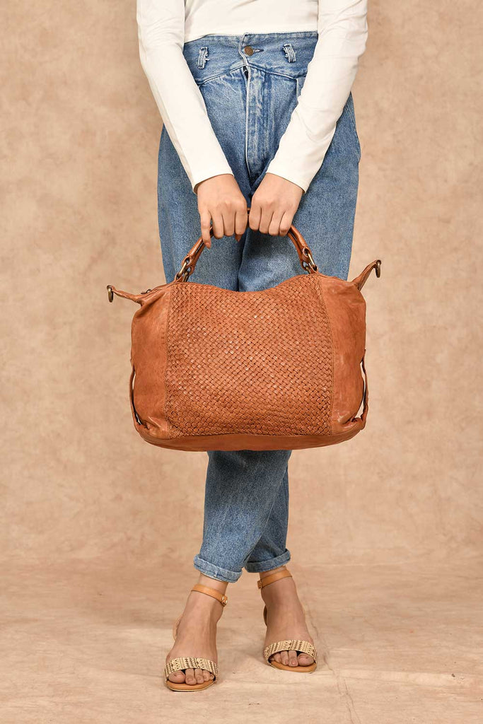 Quality- 100% leather, Criss-cross weaving design detail.
