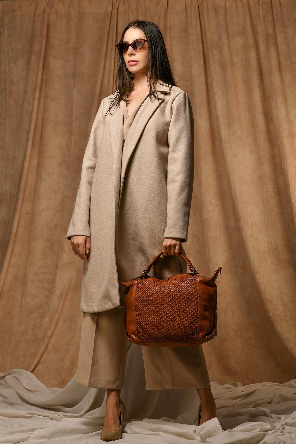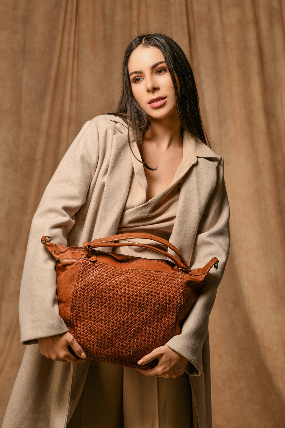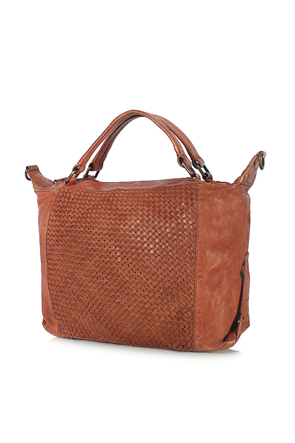 Quality- 100% leather, Criss-cross weaving design detail.