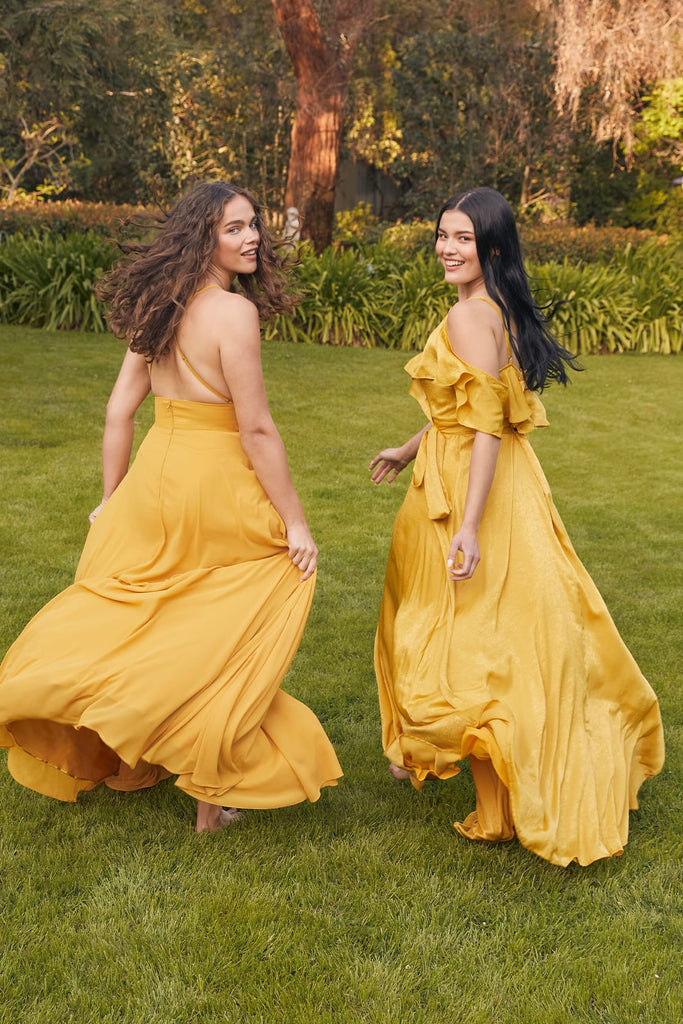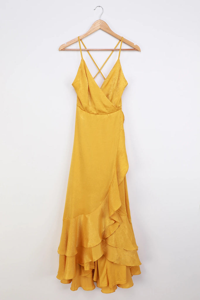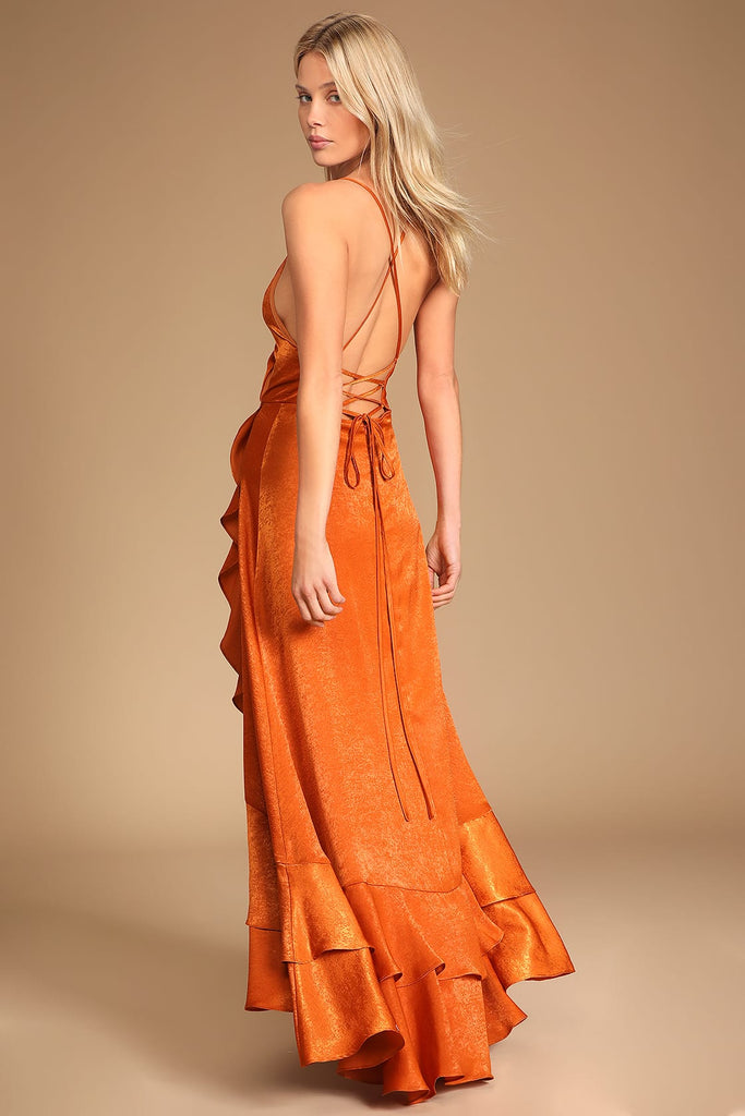 A plunging neckline and playful cut-outs lend this charming dress an alluring element.