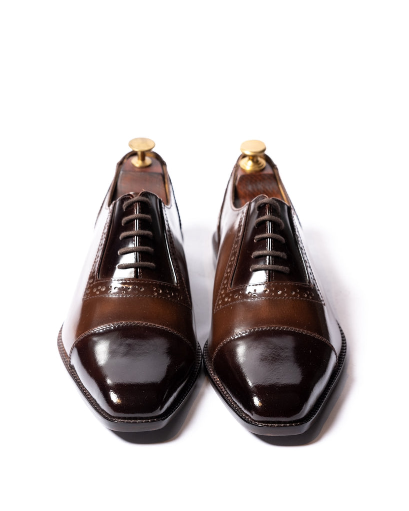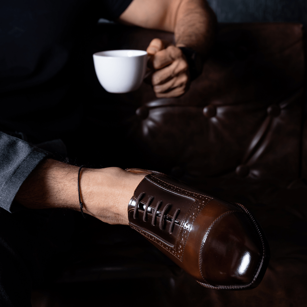 A dual tone to this oxfords gives it an edge over the classics. Burnt shade of browns makes it fit every step you take. Brushed brown tone in the middle with deep brown toe and heel adds a special feel to the look.
