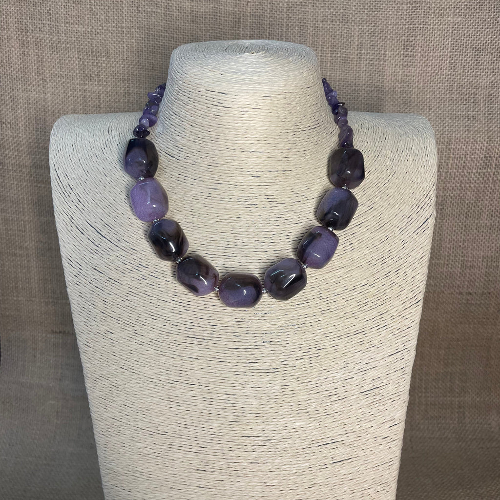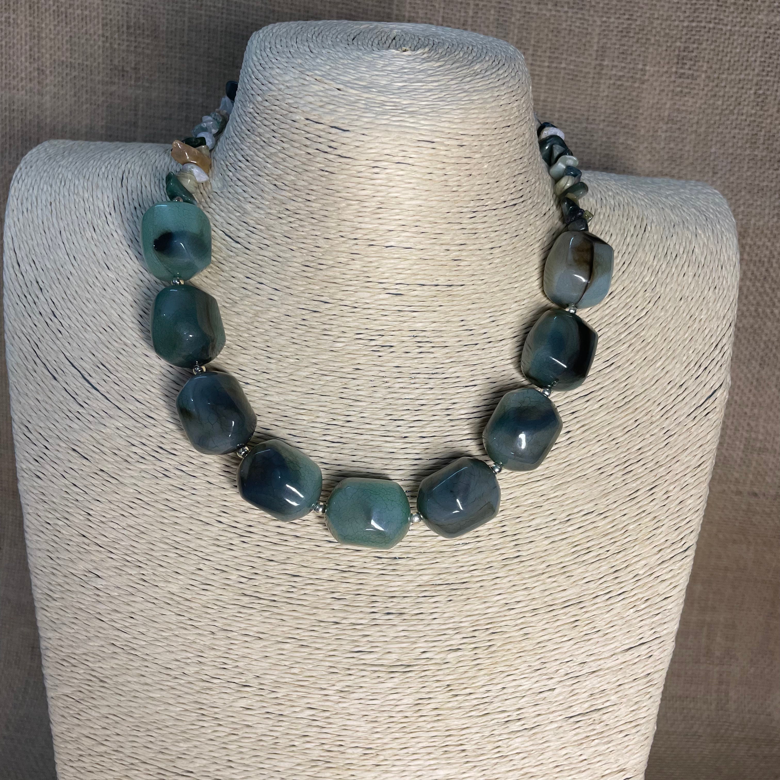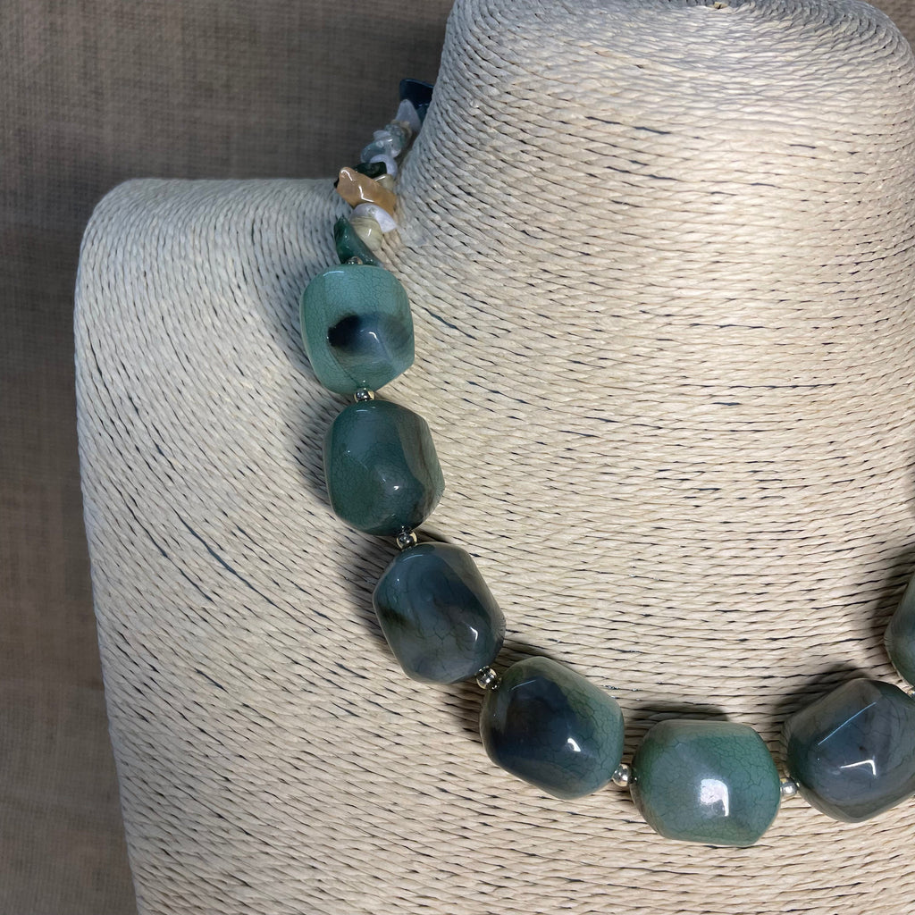 Tana statement necklace made from chip beads and big beads. Handmade with premium materials, this statement necklace is a great way to add a touch of style to your outfit. Wear it alone or layer with other pieces from our collection to create your own unique style.