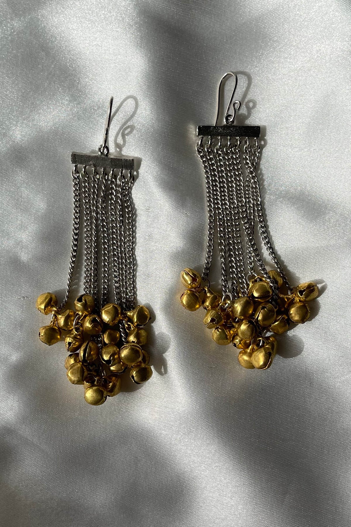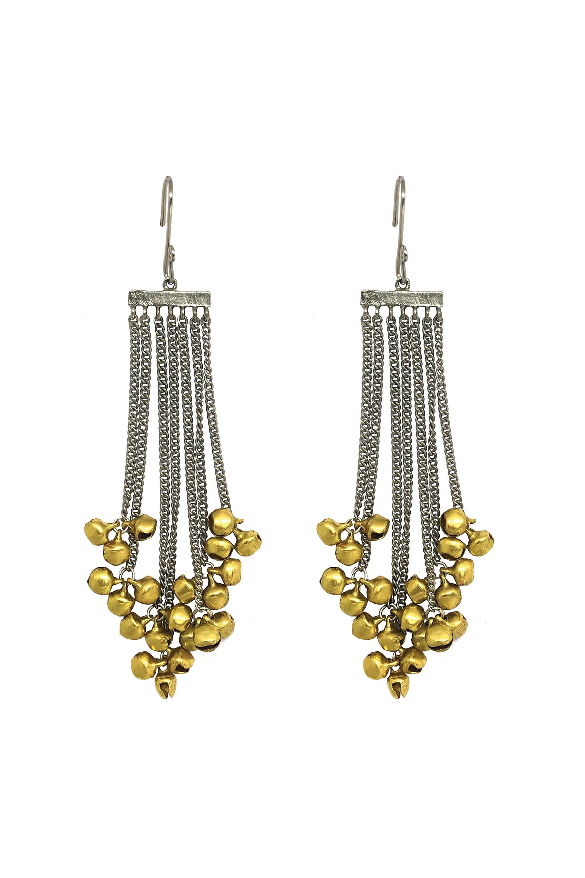 These beautiful pair of earrings are handcrafted to perfection using fine quality brass and ghungroos with light silver and gold plating on it. Traditional look with modern simplicity is what these earrings has to offer.