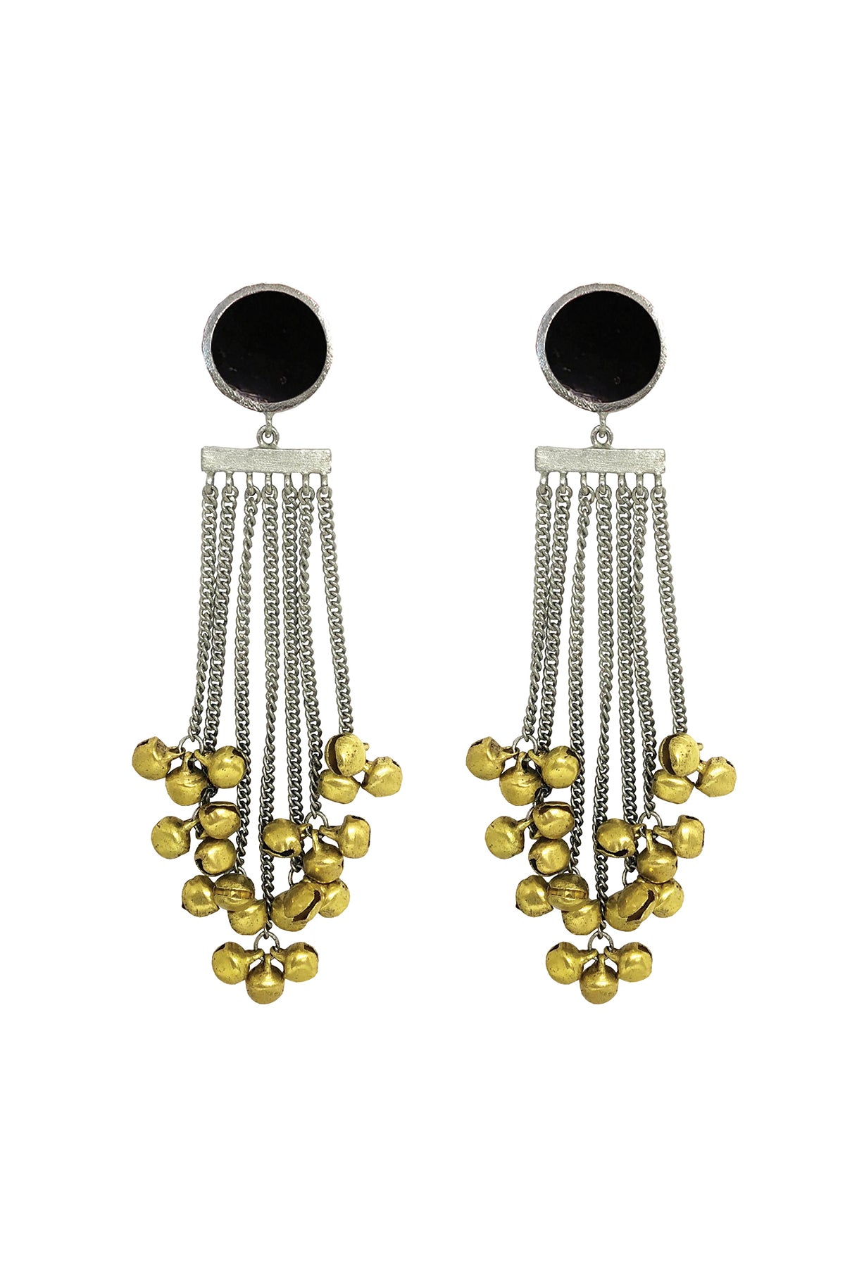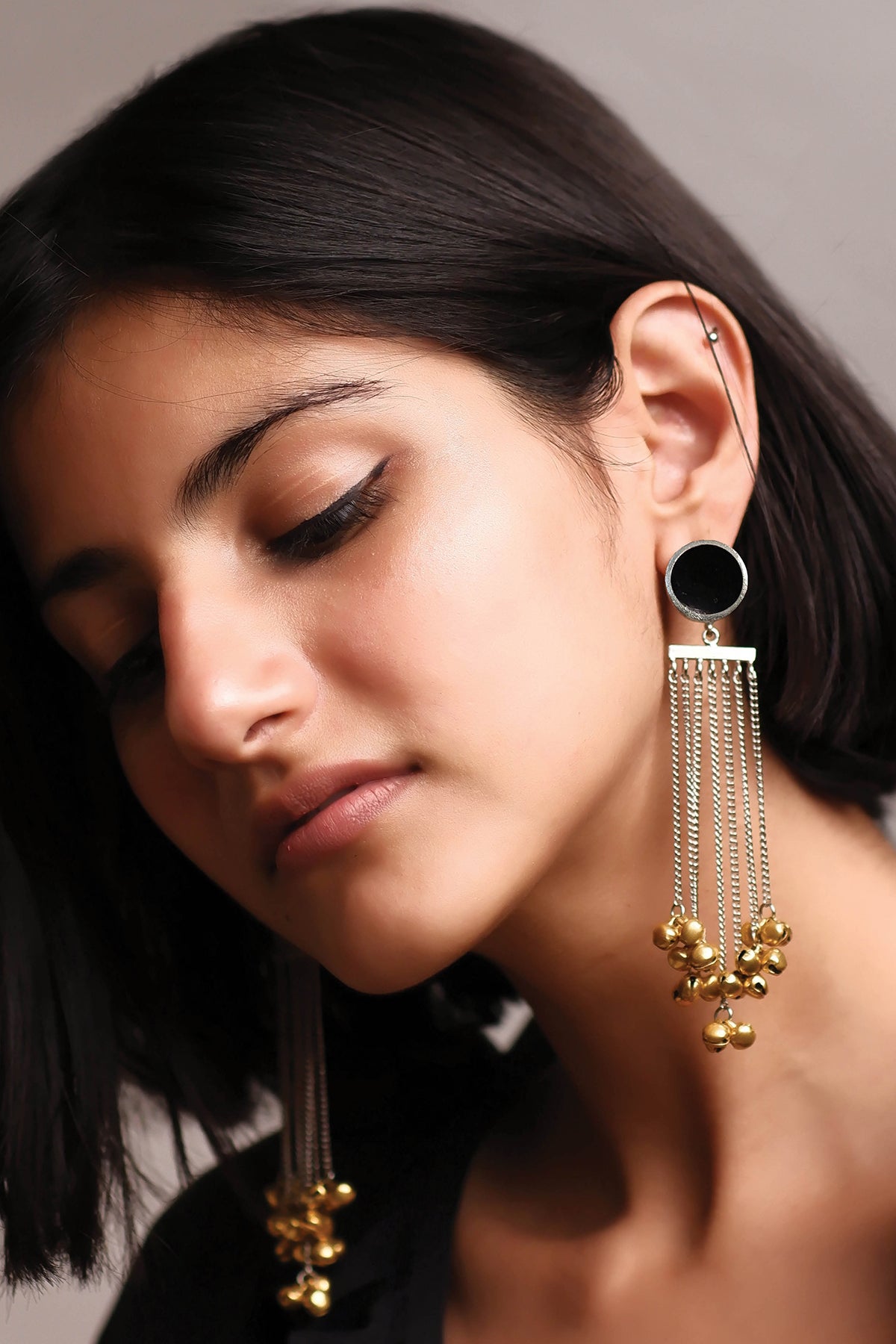 These beautiful pair of earrings are handcrafted to perfection using fine quality brass, ghungroos and black enamel with light silver and gold plating on it. Traditional look with modern simplicity is what these earrings has to offer.