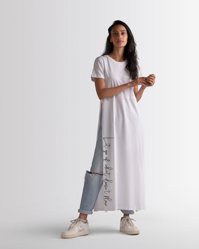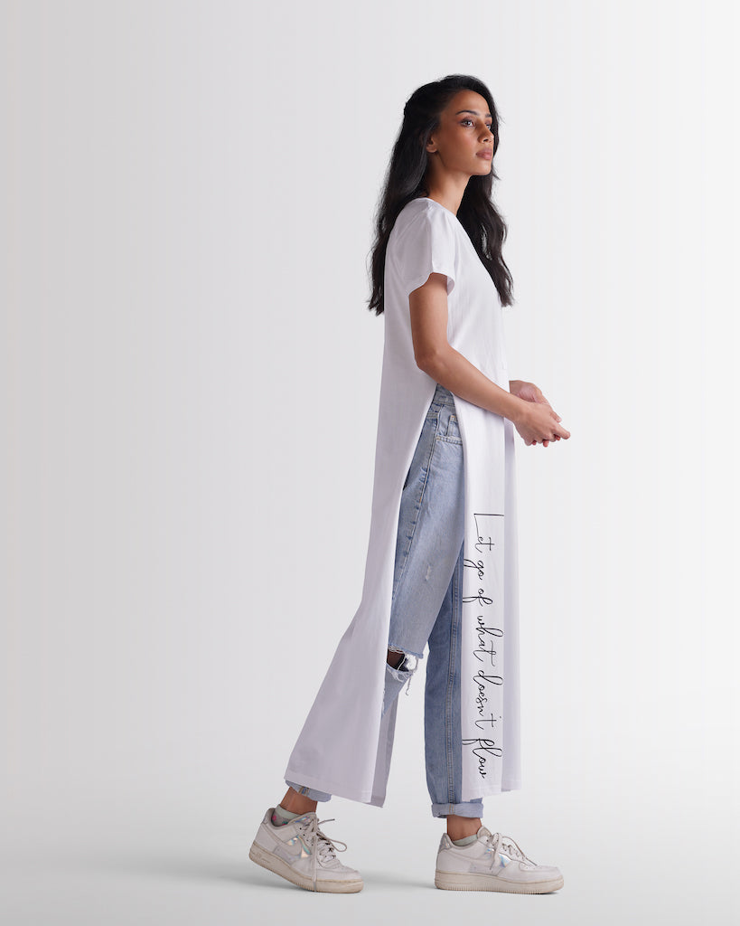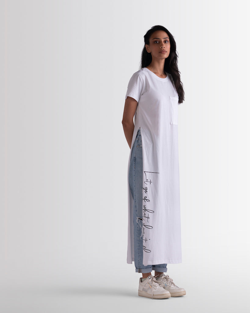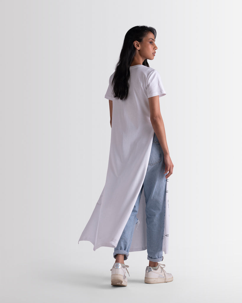 Experience zen in our side slit black knit tee. Comfort, sporty and chic all at the same time. Spend a whole day in it and yet look like a diva with sporty white kicks or dainty heels for the night!