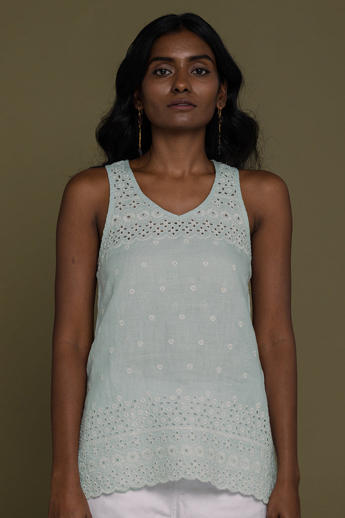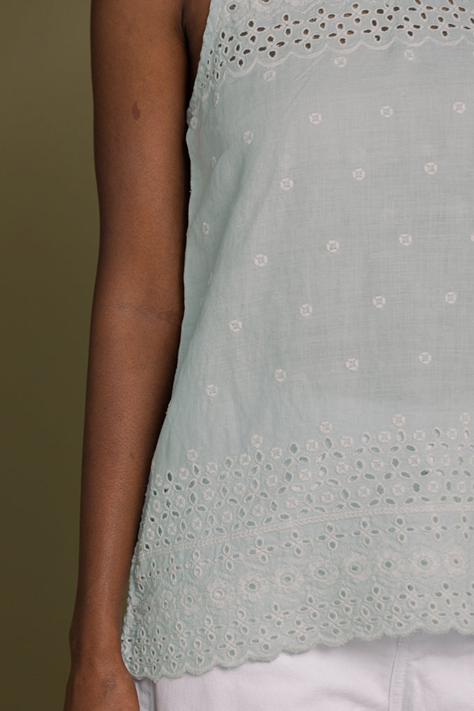 The racerback tank just got a stylish makeover with eyelet embroidery and a fit that flatters!