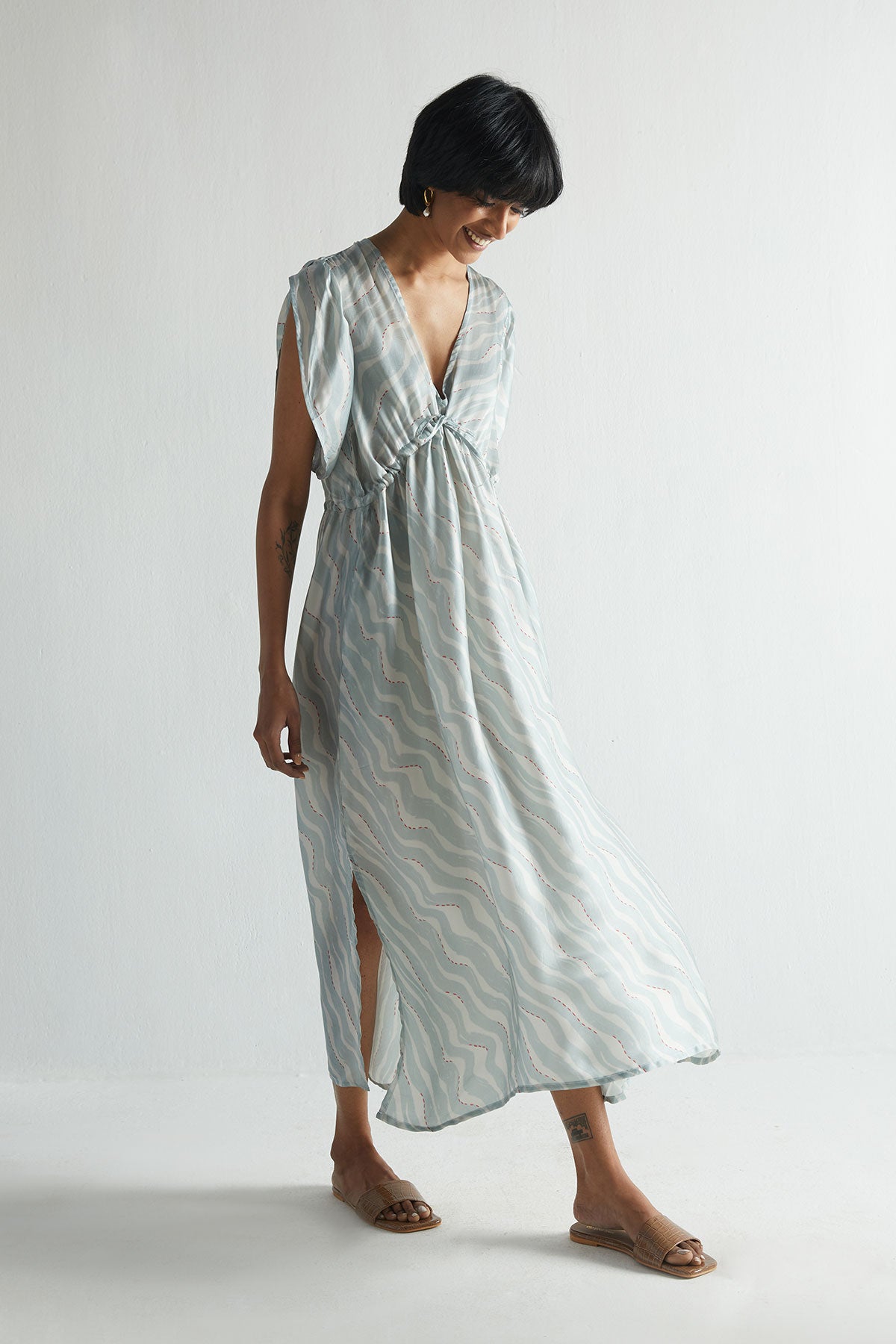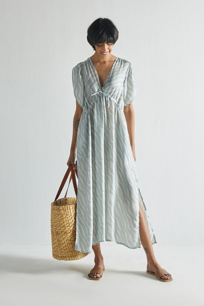 An easy, flowy dress that can take you from beach bumming to bar hopping in no time. The deep neckline and side slits add a little playfulness to this versatile maxi dress. FINAL SALE: This item cannot be returned or exchanged.