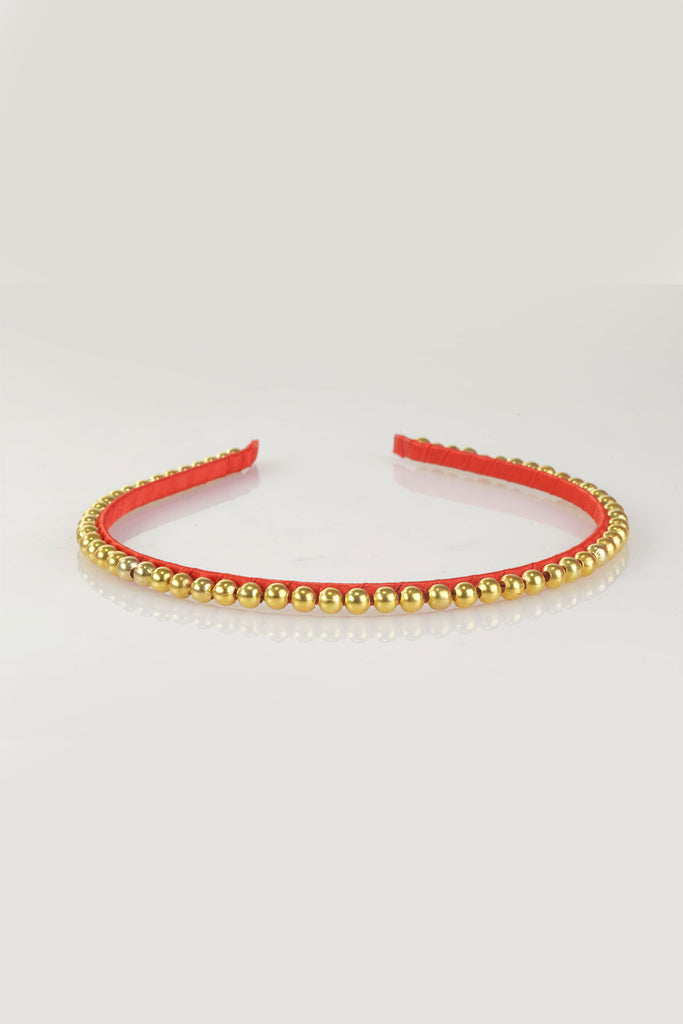 A timeless, sophisticated design with Golden Pearls overlaid on a thin red band. Looks especially good while contrasted against dark outfits!