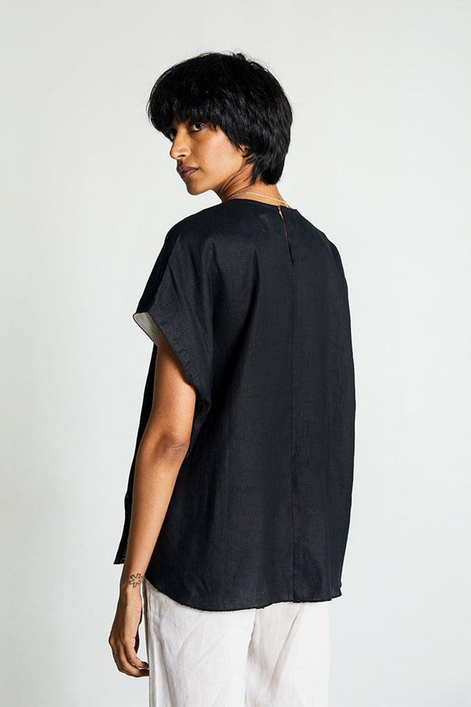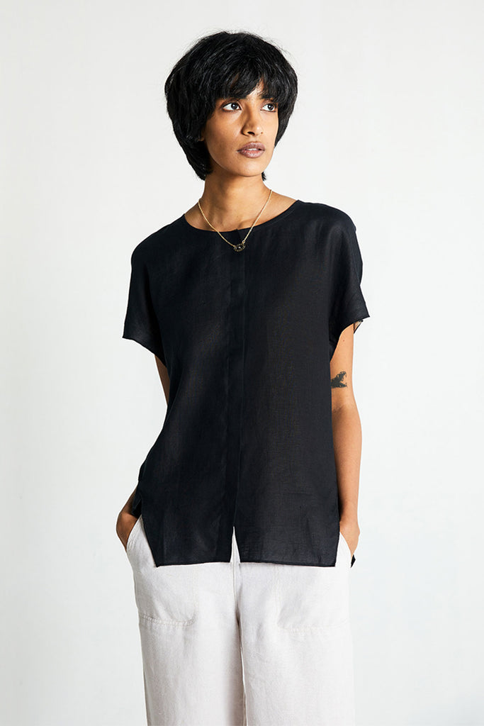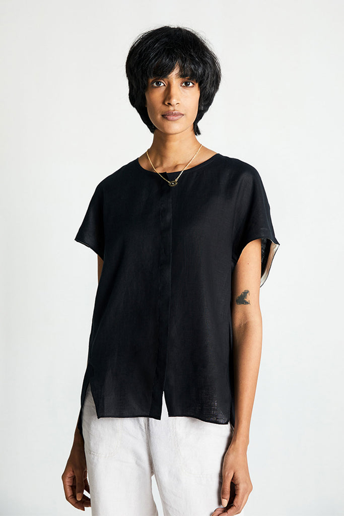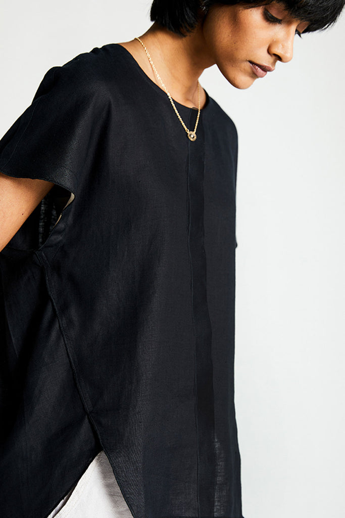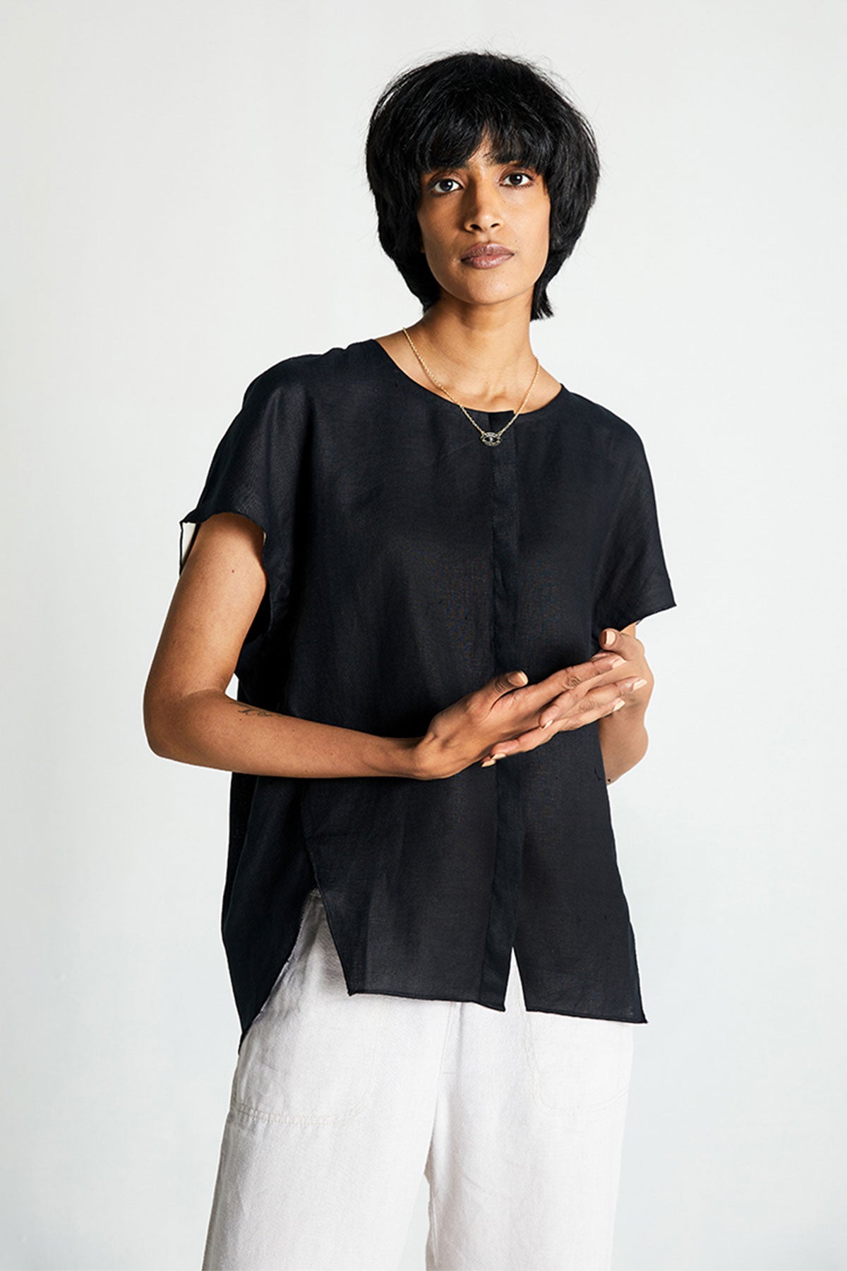 A structured, kimono style shirt, we love the wide sleeve and off-white hemp detail. This is an elegant, simple piece you can grab and wear everyday.