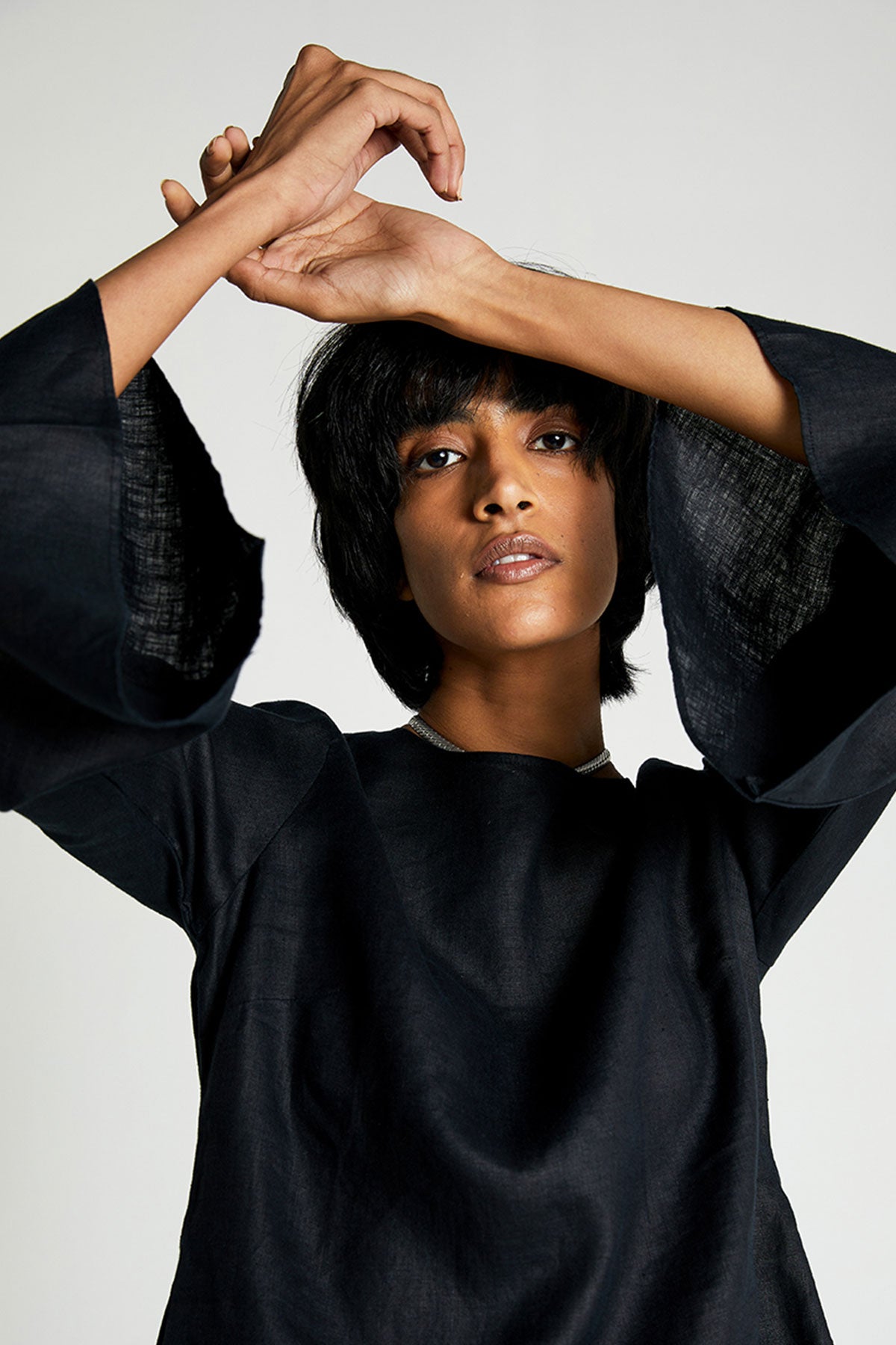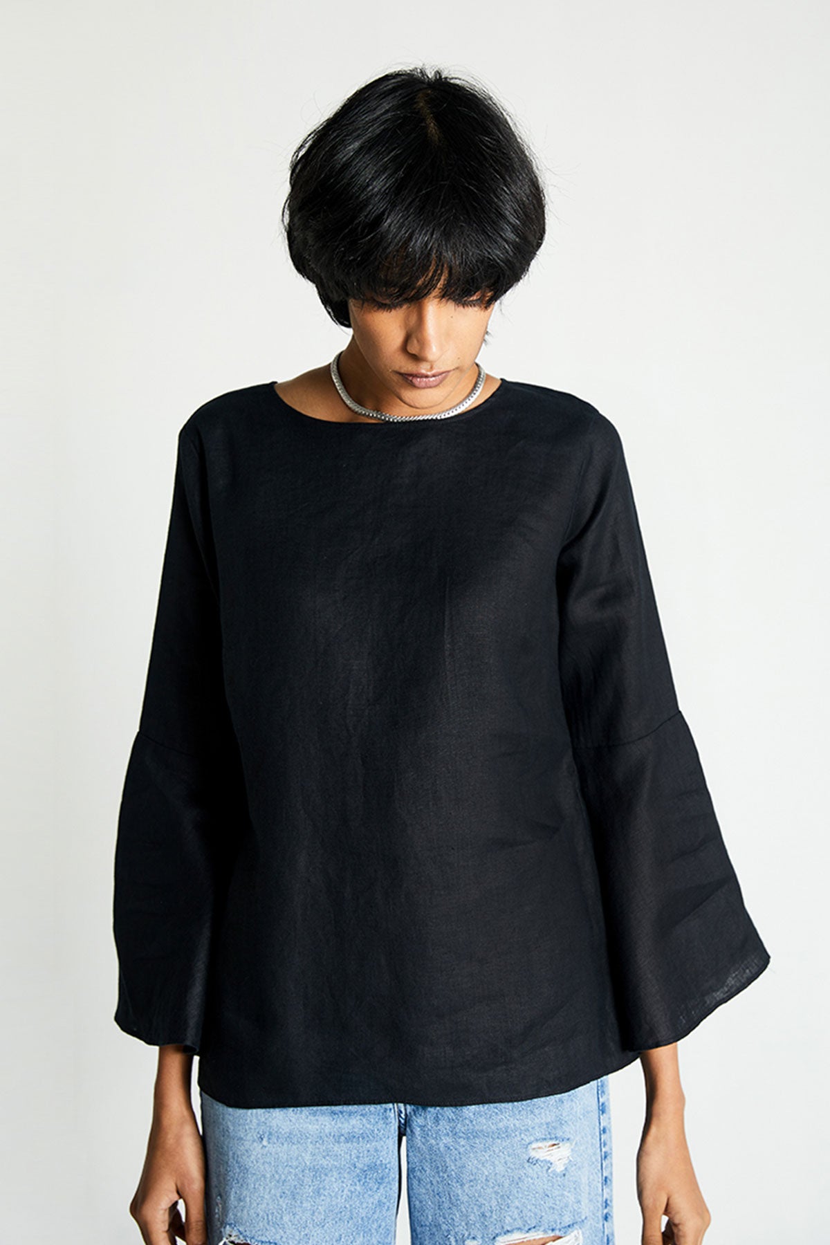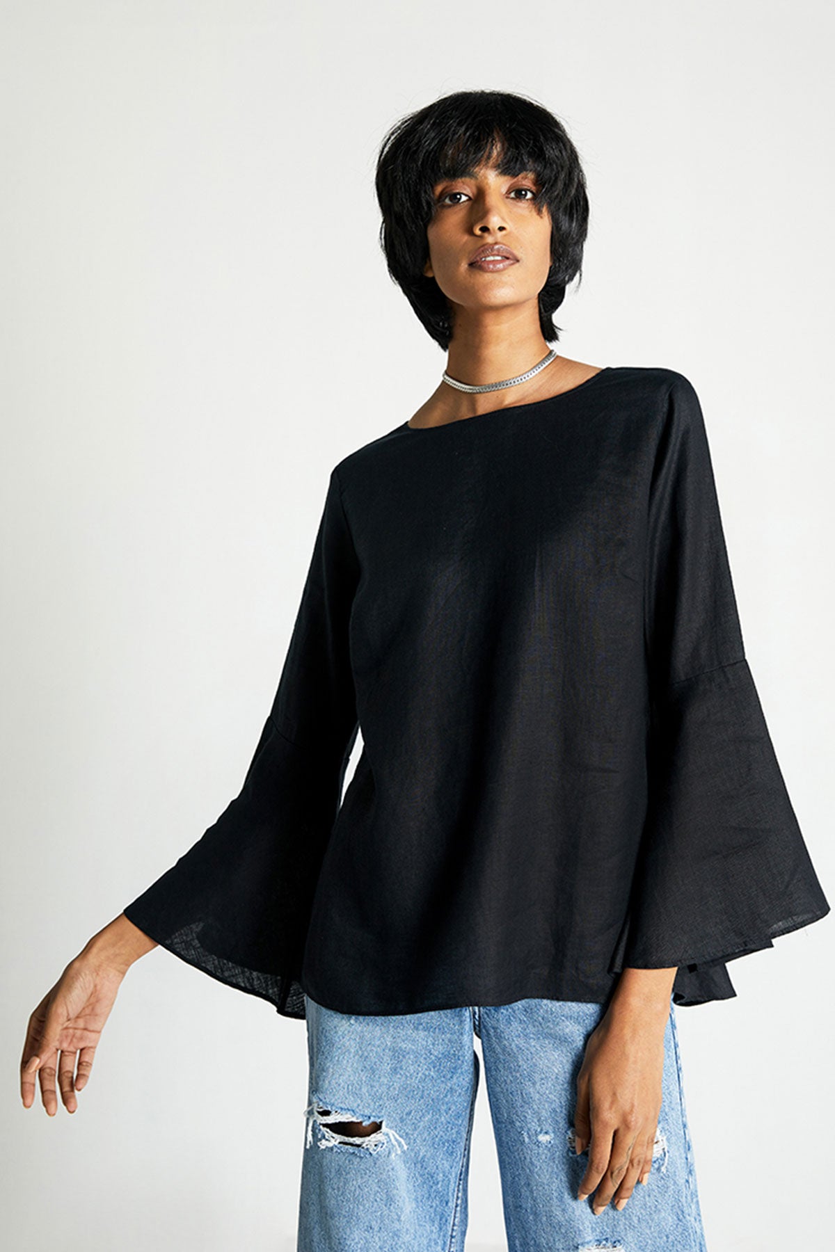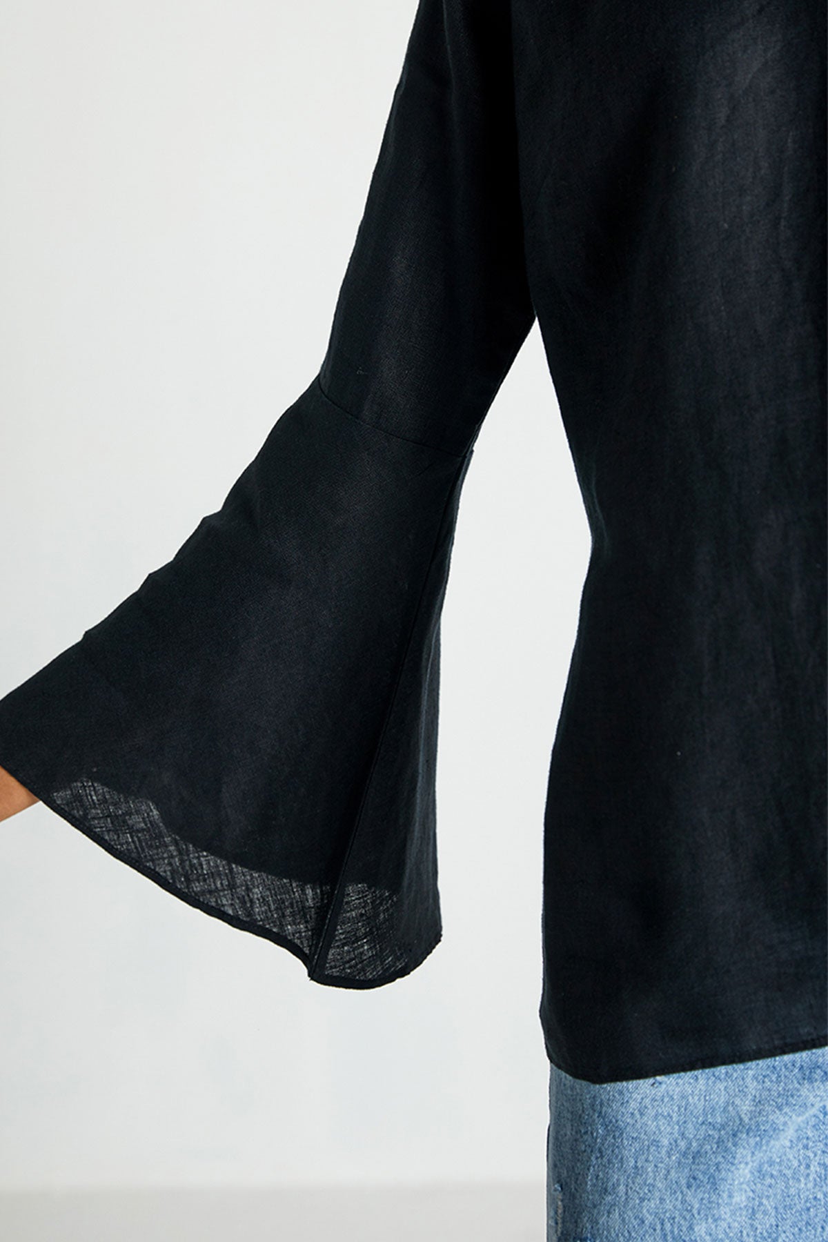 Perfect for layering over jeans or trousers, the bell sleeves of this elegant shirt add the perfect feminine detail.