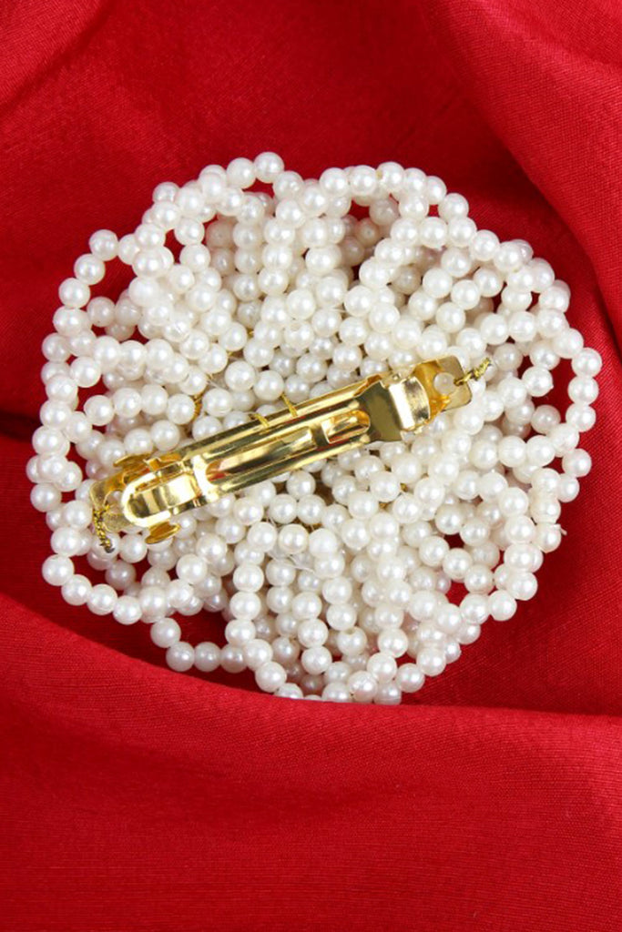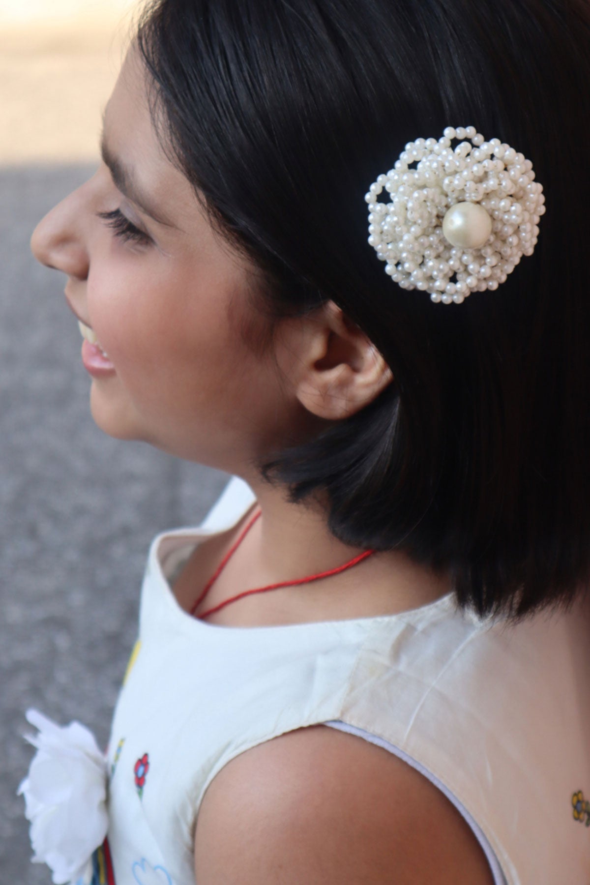Delicate Pearls centred around a large Pearl nucleus spread out in a dainty flower shape in this sophisticated clip. Petite yet eye-catching, this designer piece adds oodles of elegance to your dresses and skirts.