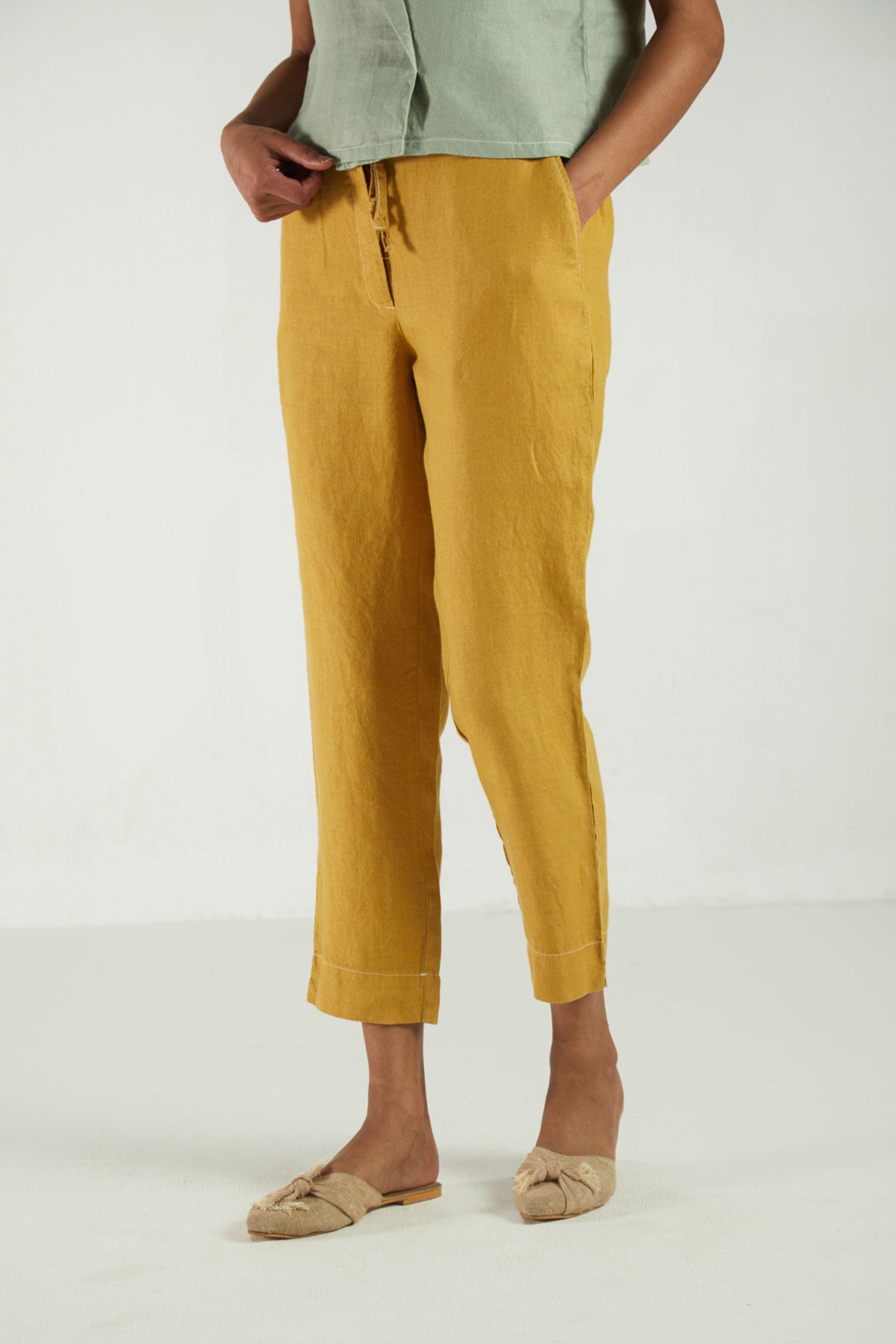 These 100% hemp trousers are the only pair you need in your wardrobe. The high-waist and tapered hem make these a flattering and comfortable pair.