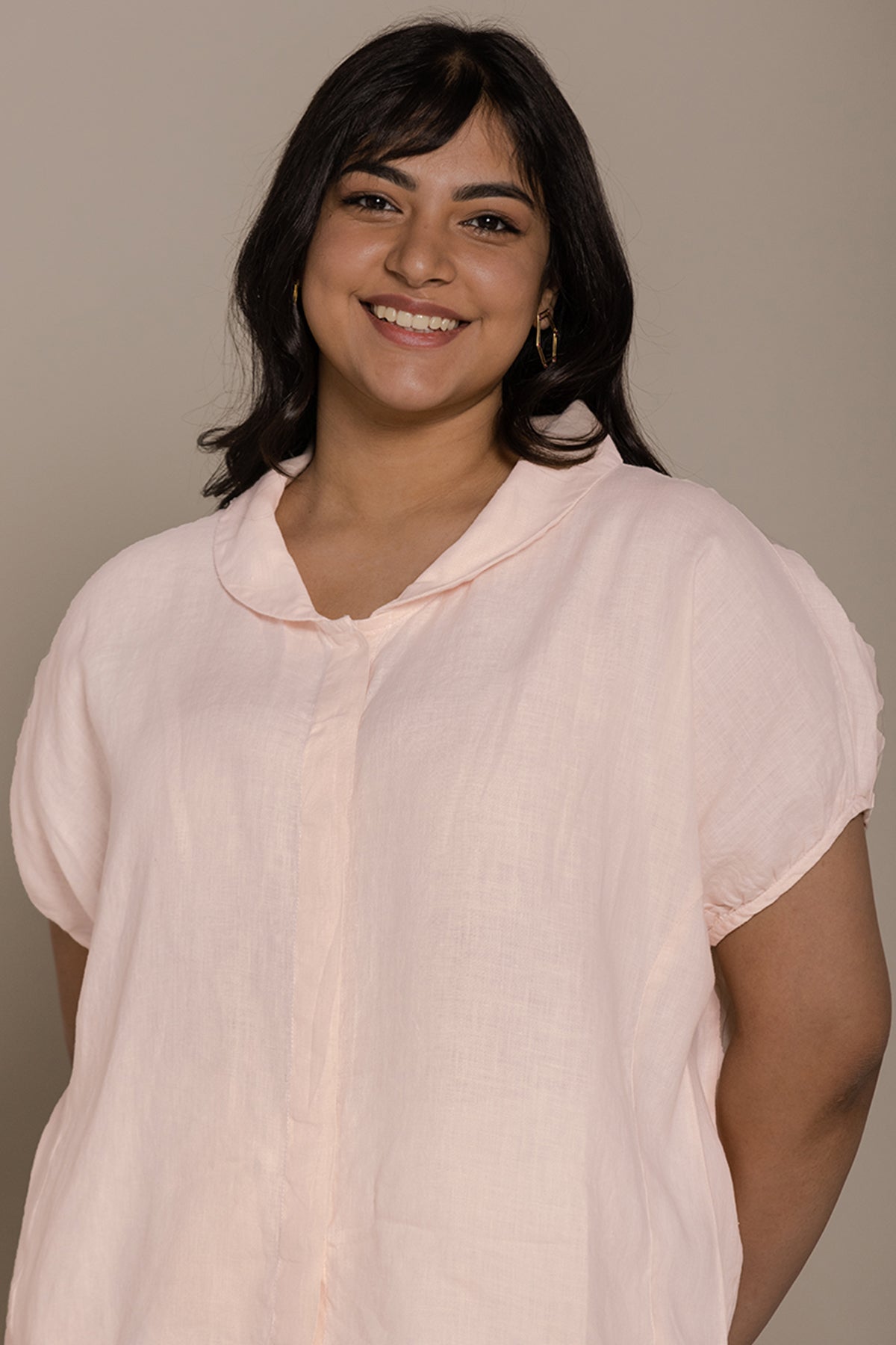This classic princess-cut shawl collar shirt with a light and airy feel is ideal for work or play.