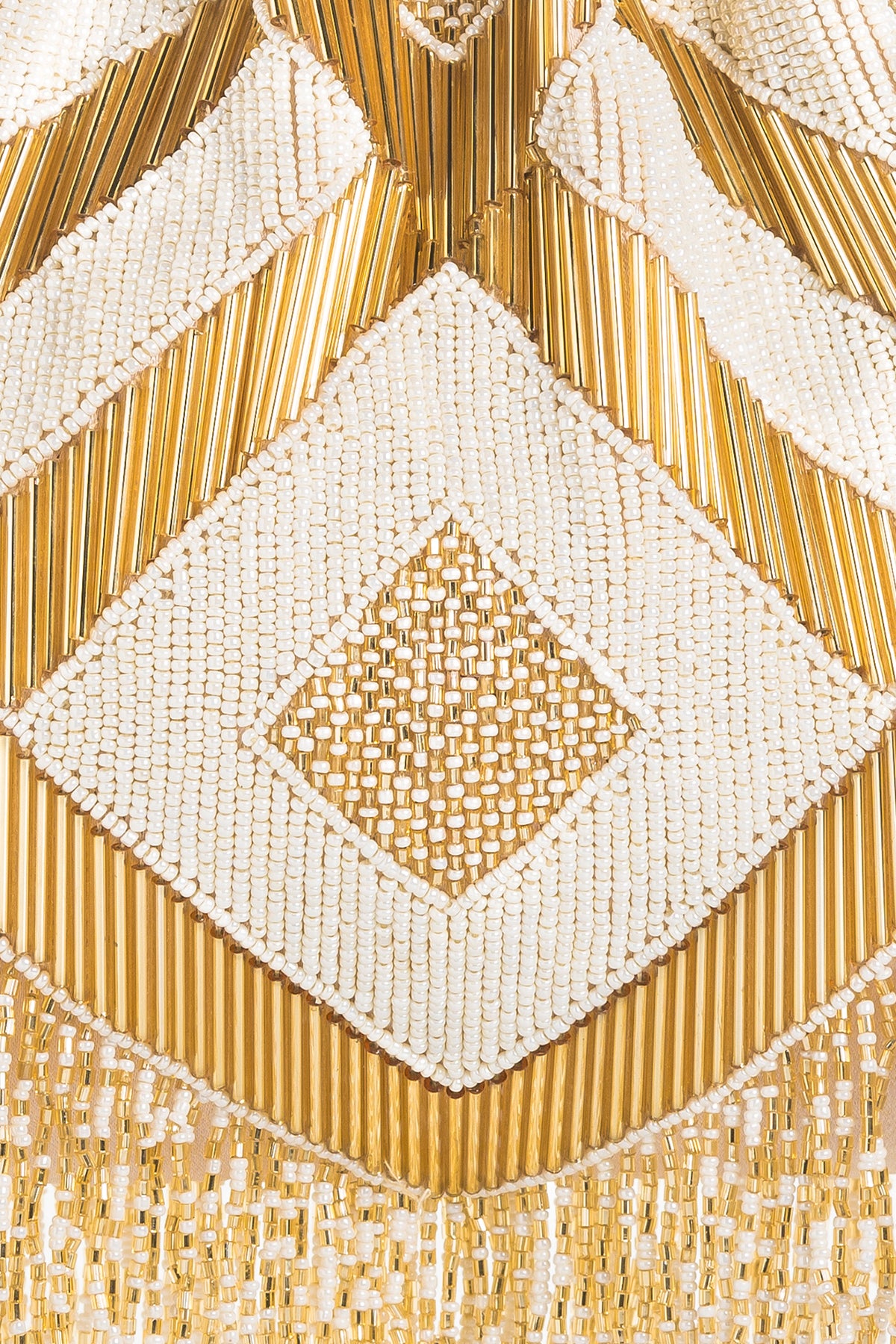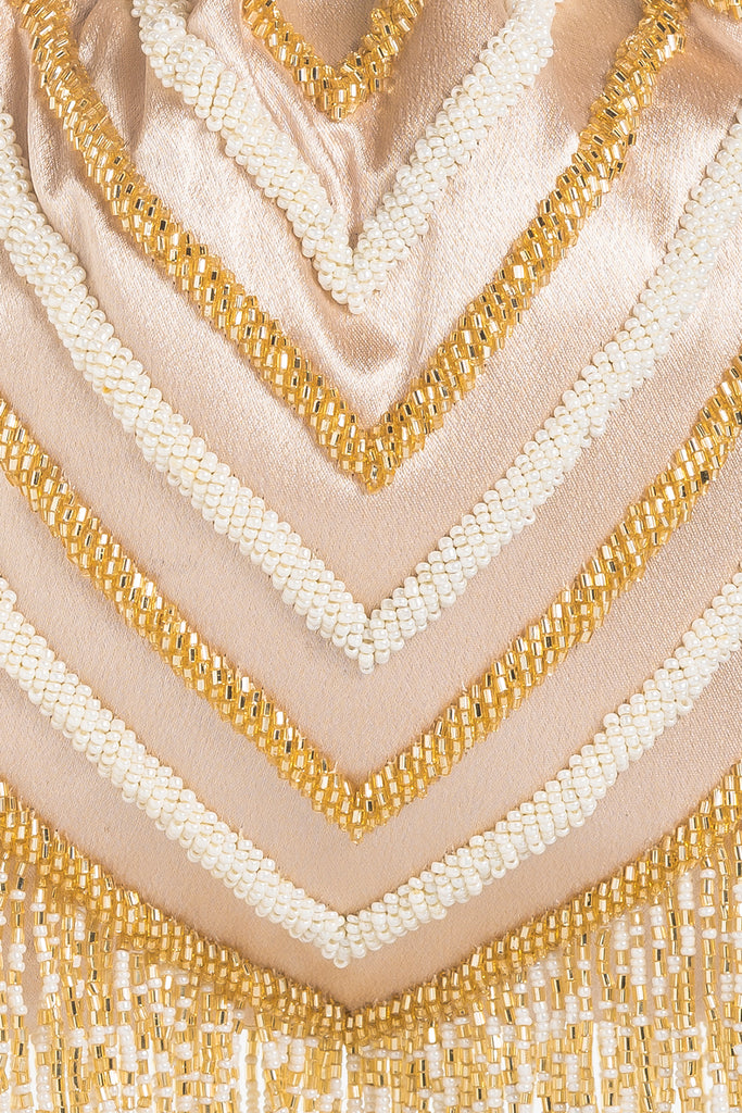 Cheveron on the back and aztec patterned embroidery on the front. finished with mixed pot tassels matching the aztec pattern.