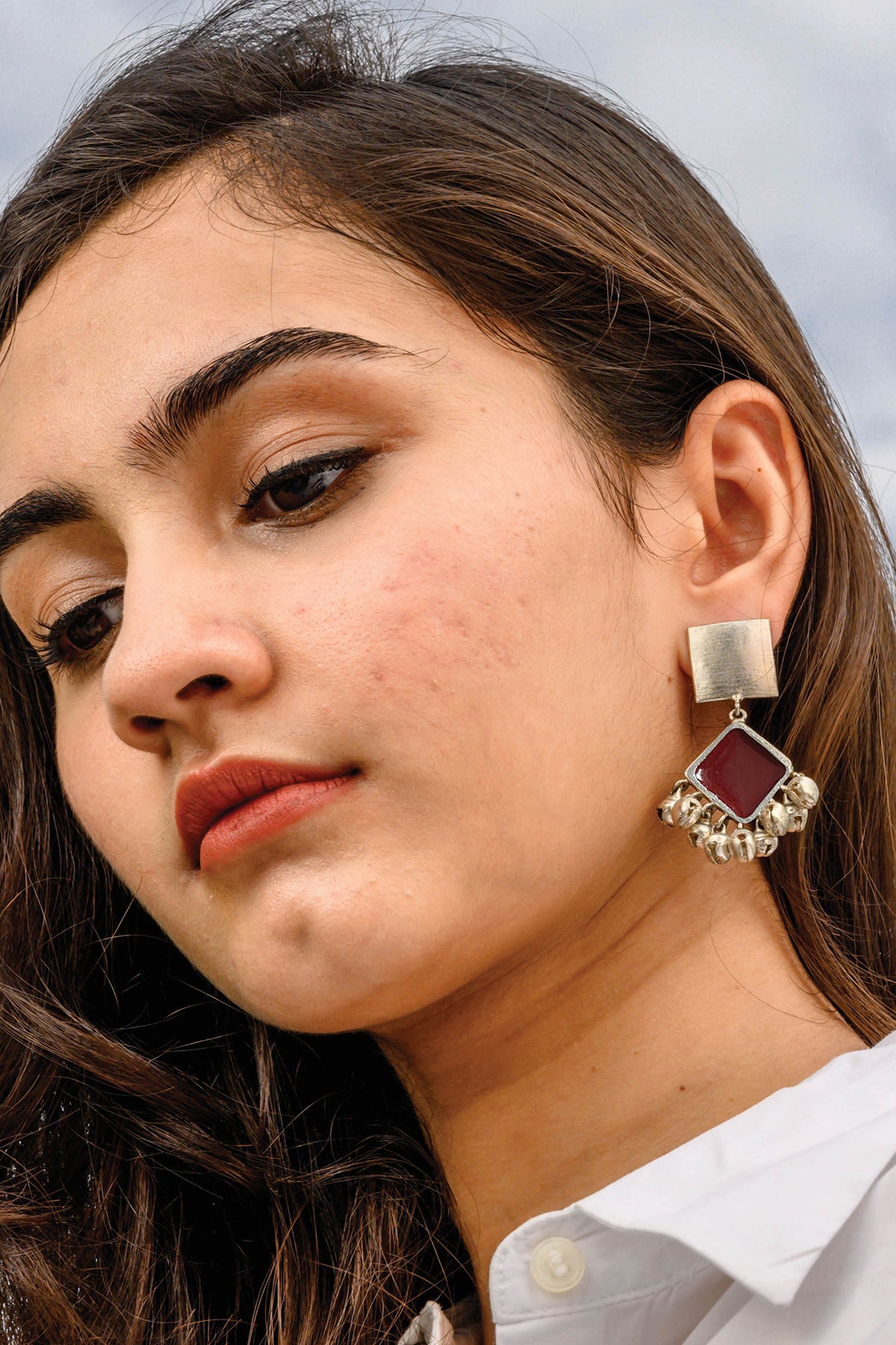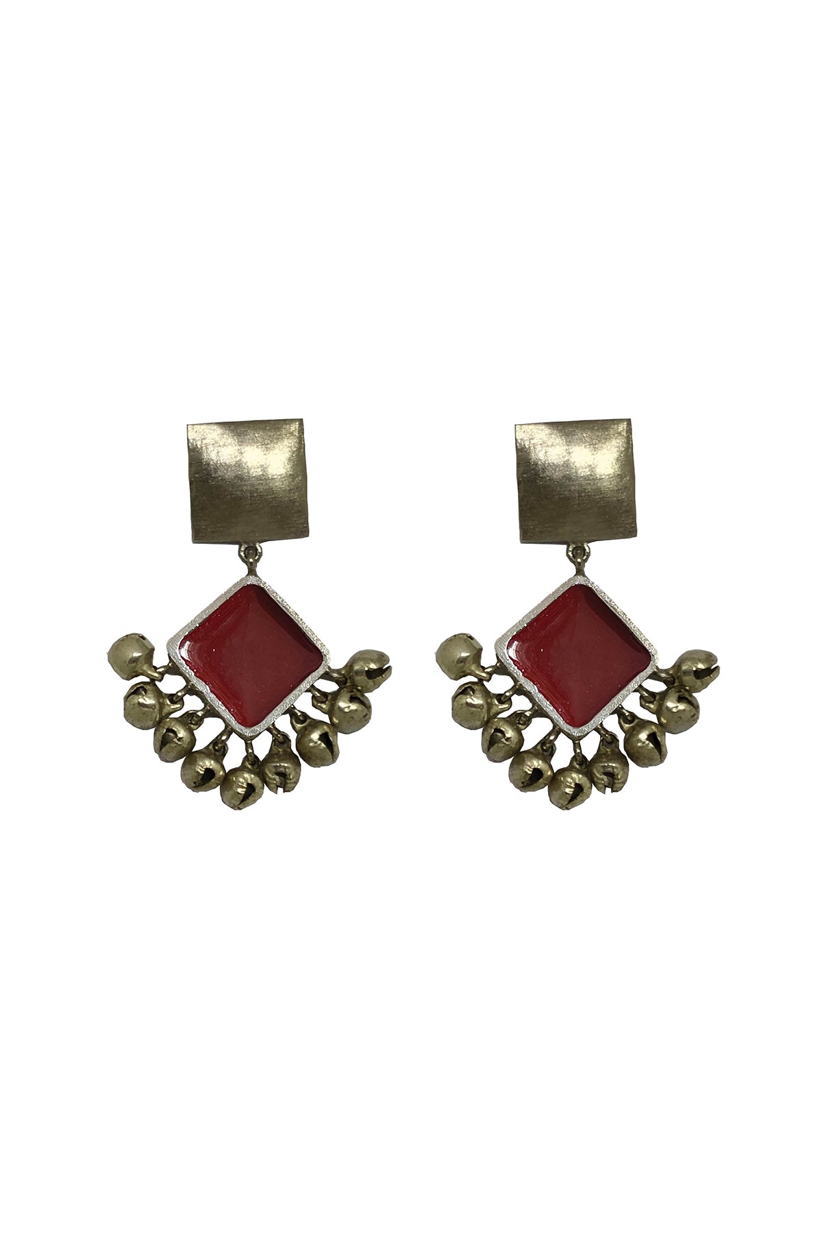 These beautiful pair of earrings are handcrafted to perfection using fine quality brass, ghungroos and black enamel with light silver plating on it. Traditional look with modern simplicity is what these earrings has to offer.