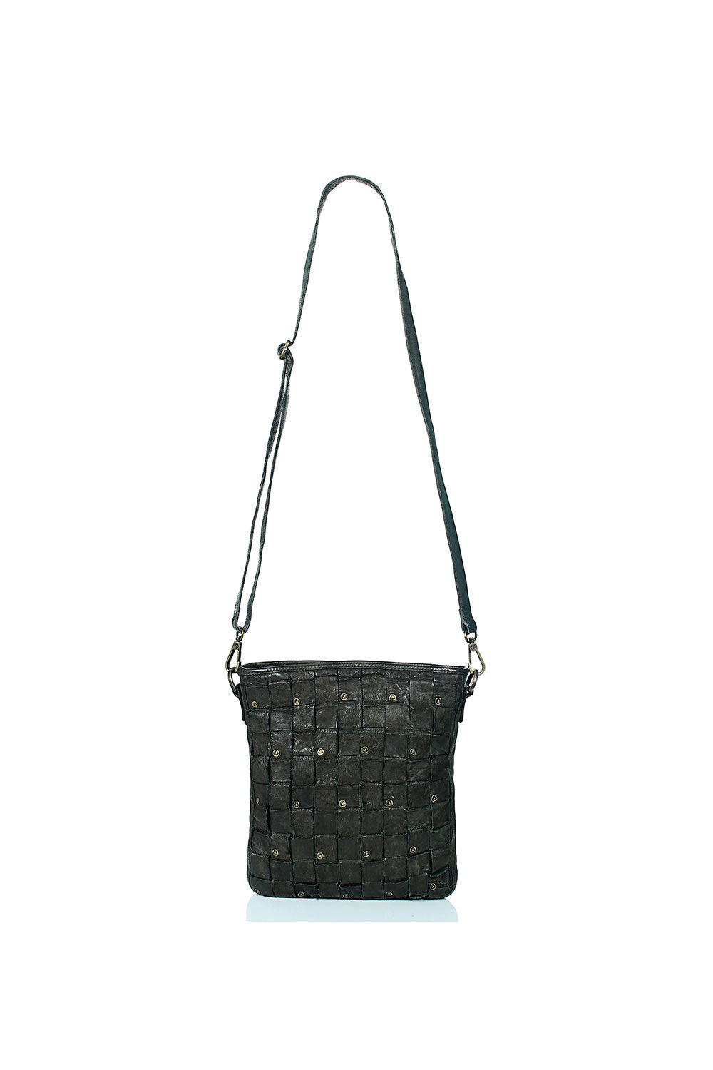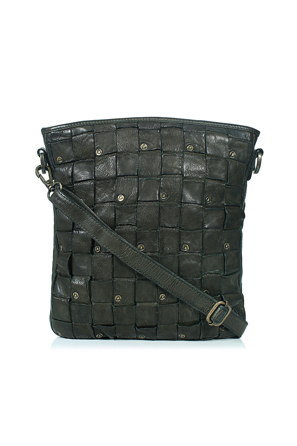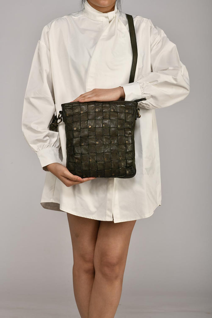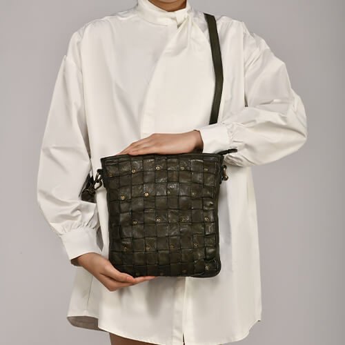 Quality- 100% leather, woven design with damaged rivets detailing.