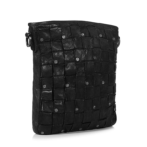 Quality- 100% leather, woven design with damaged rivets detailing.