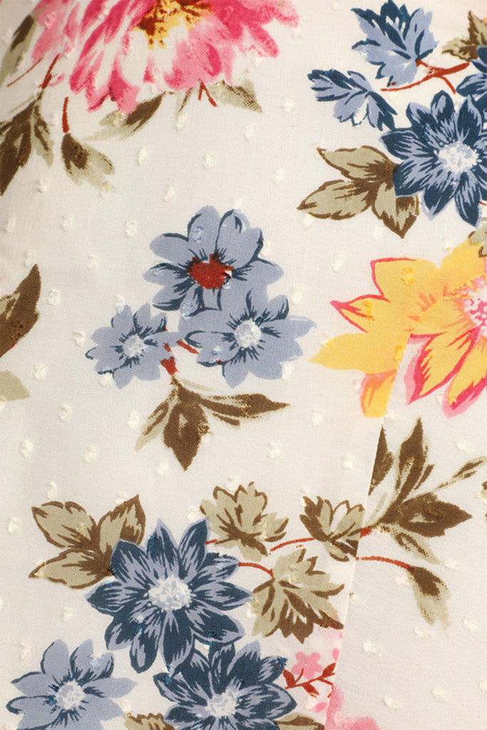 The floral dress is sure to be the piece you always pick! Lightweight woven fabric, with a colorful floral print and clipped dots, shapes this dress that has adjustable spaghetti straps, a V-neckline, and a blousy bodice. A high waist tops a skater mini skirt with seam detailing. Perfect for a girls' day out teamed with your fave mules and a tote for a look we are loving!