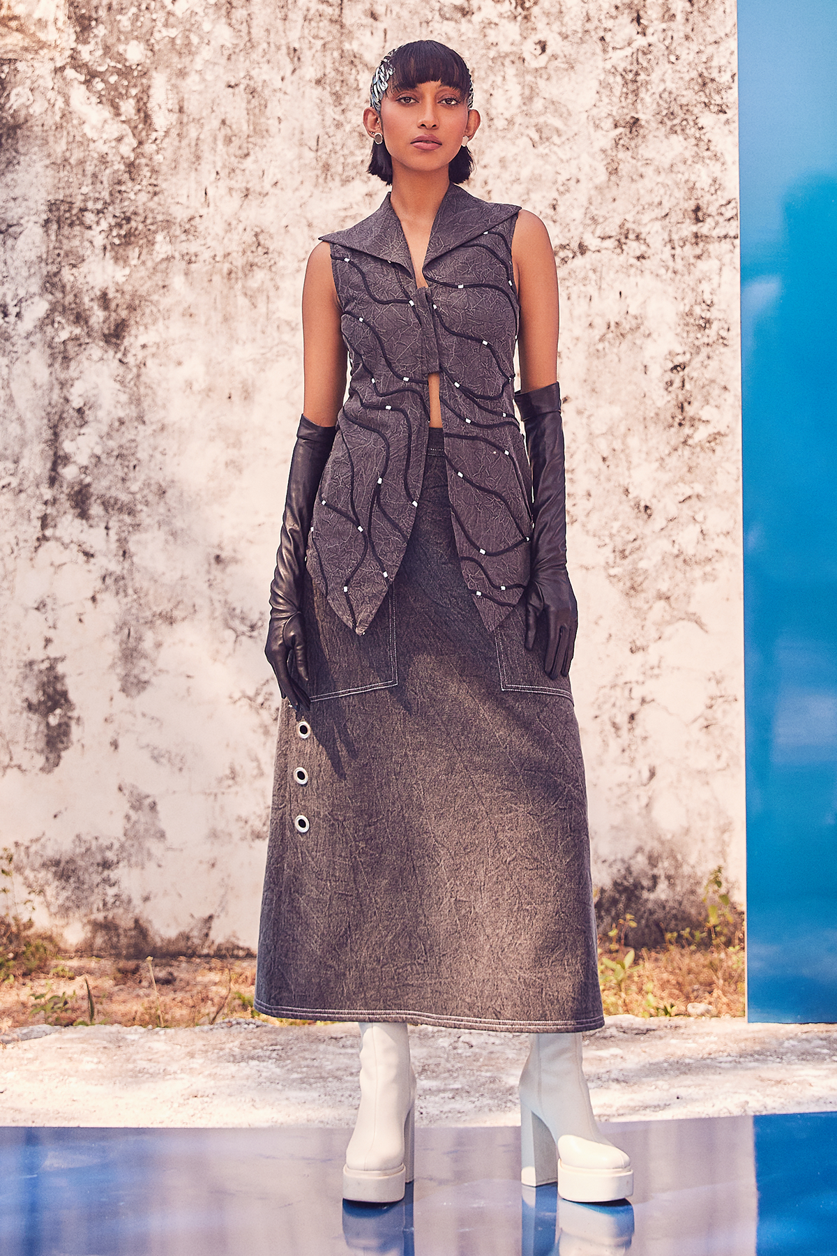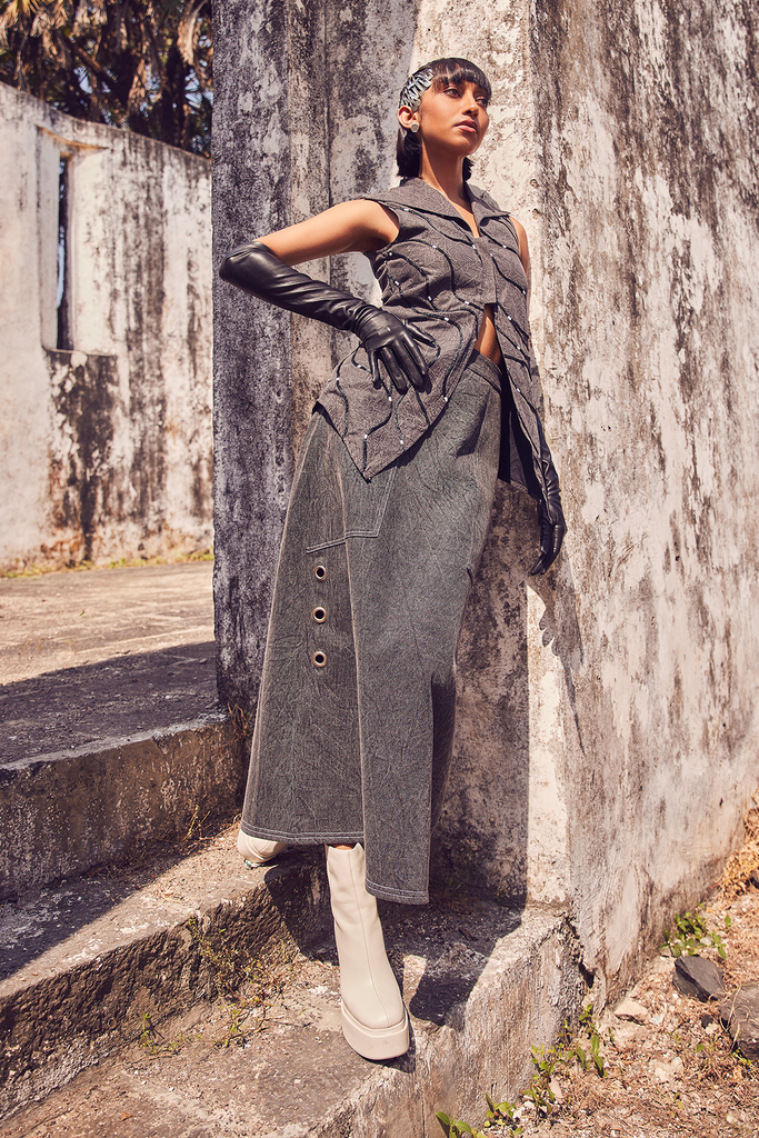 Washed Denim Eyelet Skirt