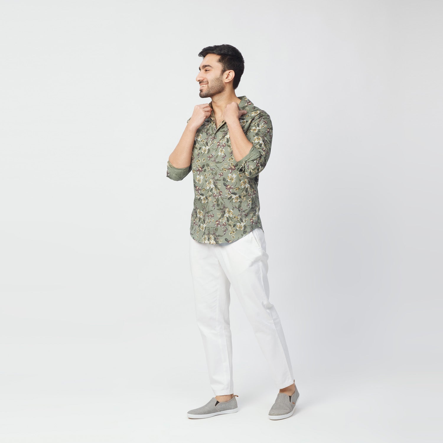 With prints making their way mainstream, no wardrobe is complete without a distinguished floral printed shirt. Designed for the fashion conscious modern man, this floral printed shirt exudes confidence and goes on to prove the fortune favors the brave. Featuring an interesting play of color, style it with a pair of muted chinos to further accentuate the print; ensuring you have heads turning all along the way.