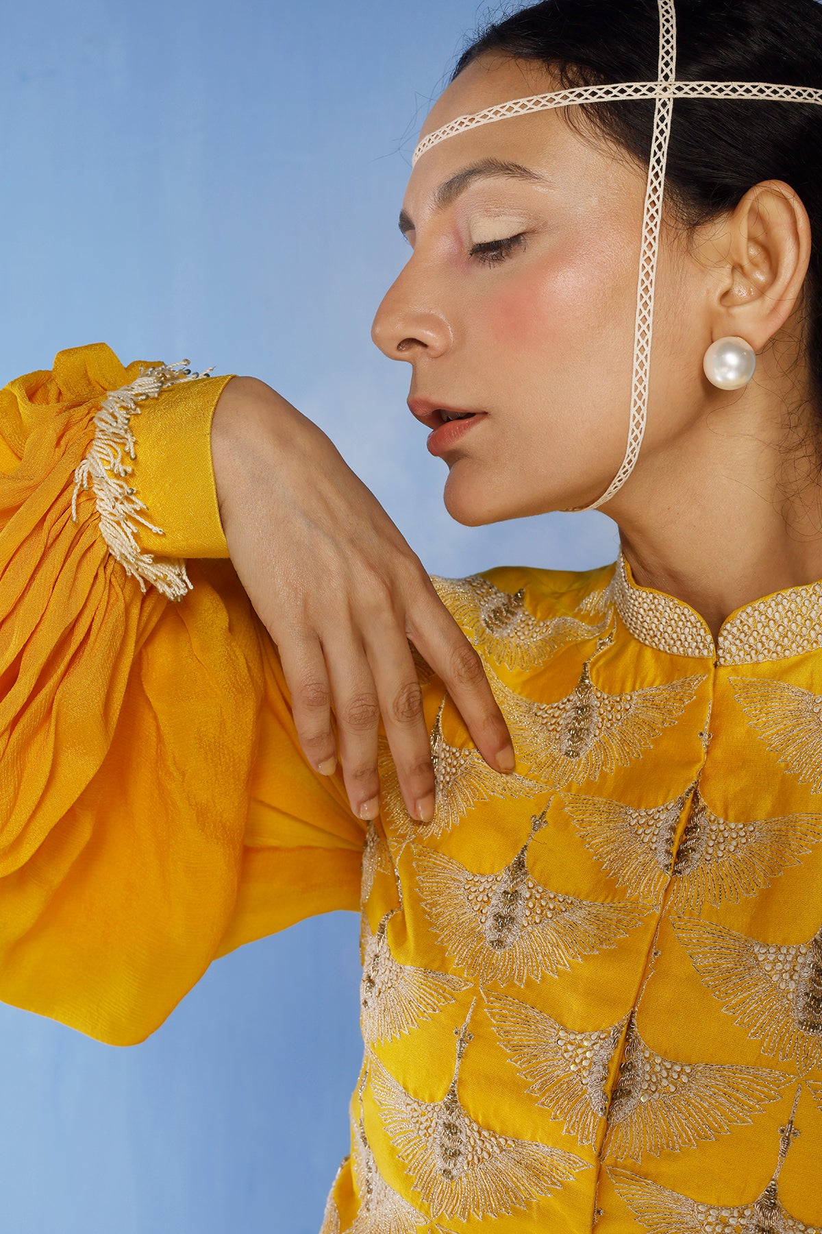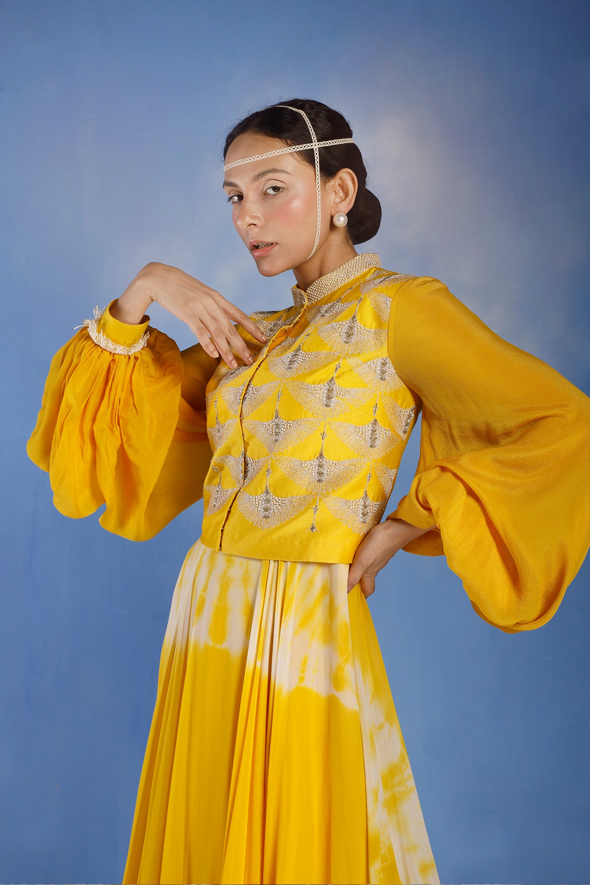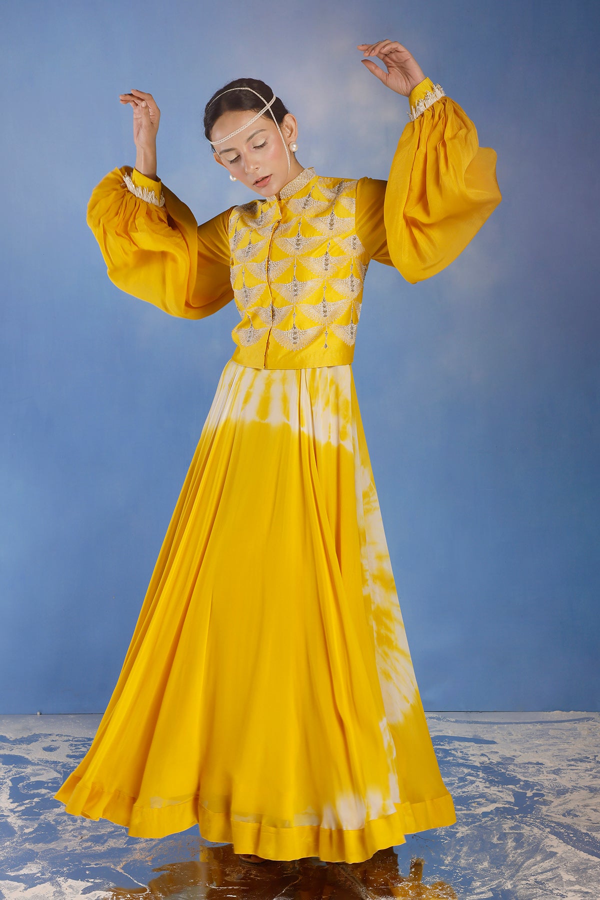 Yellow Georgette Embroidered Jacket And Anarkali Set