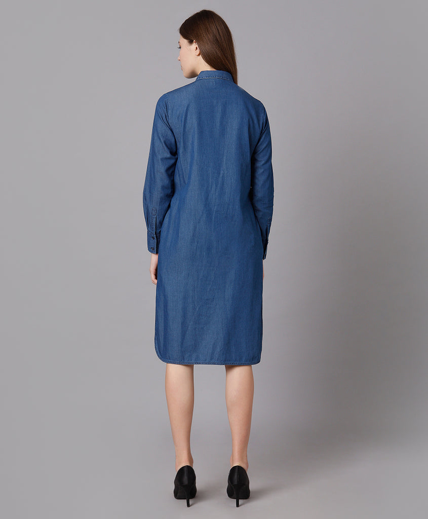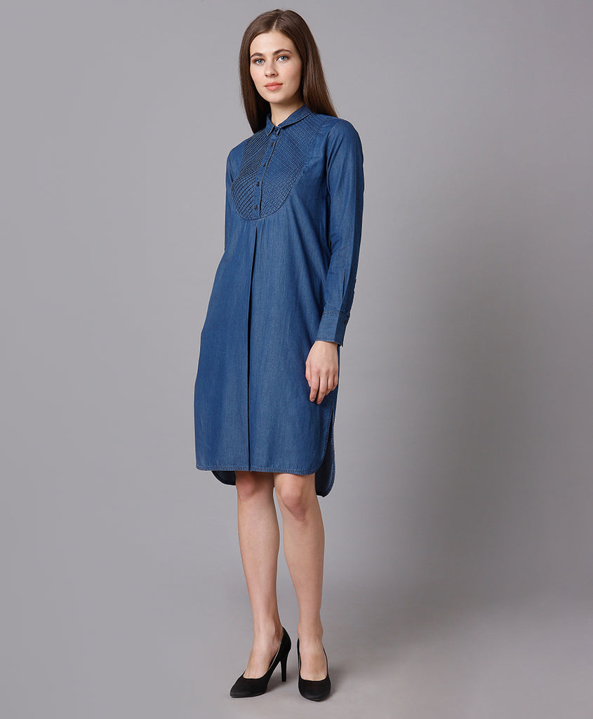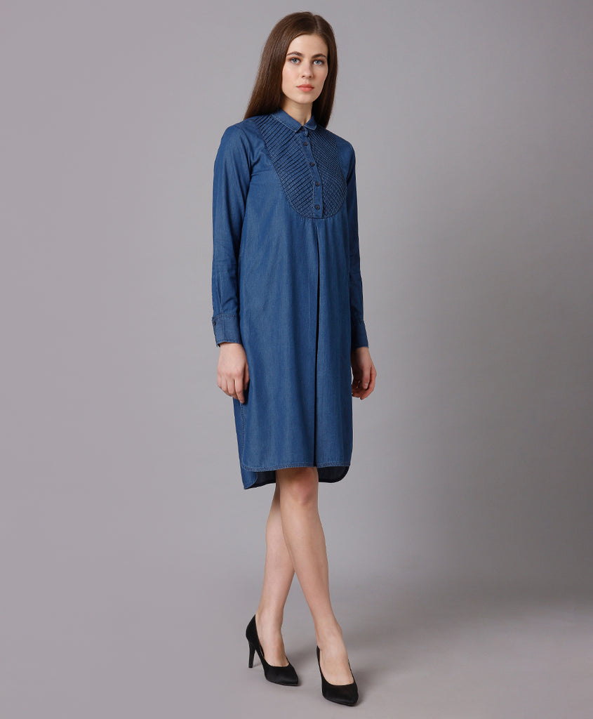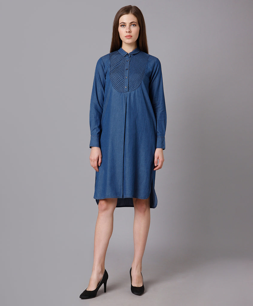 Giving you reasons to Dress. This Denim Dress is a must buy this Holiday Season. The dress can be teamed with a pair of stilettos for a complete look.