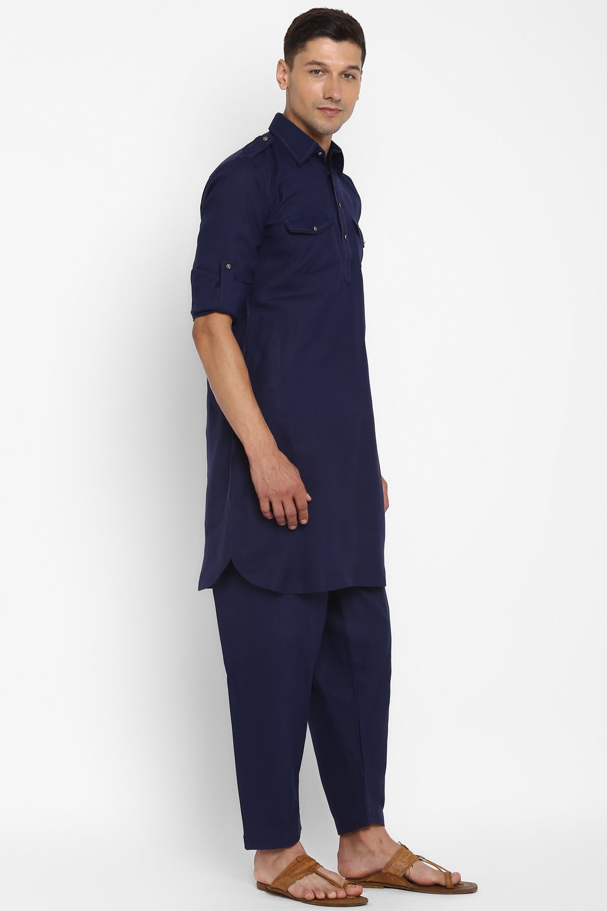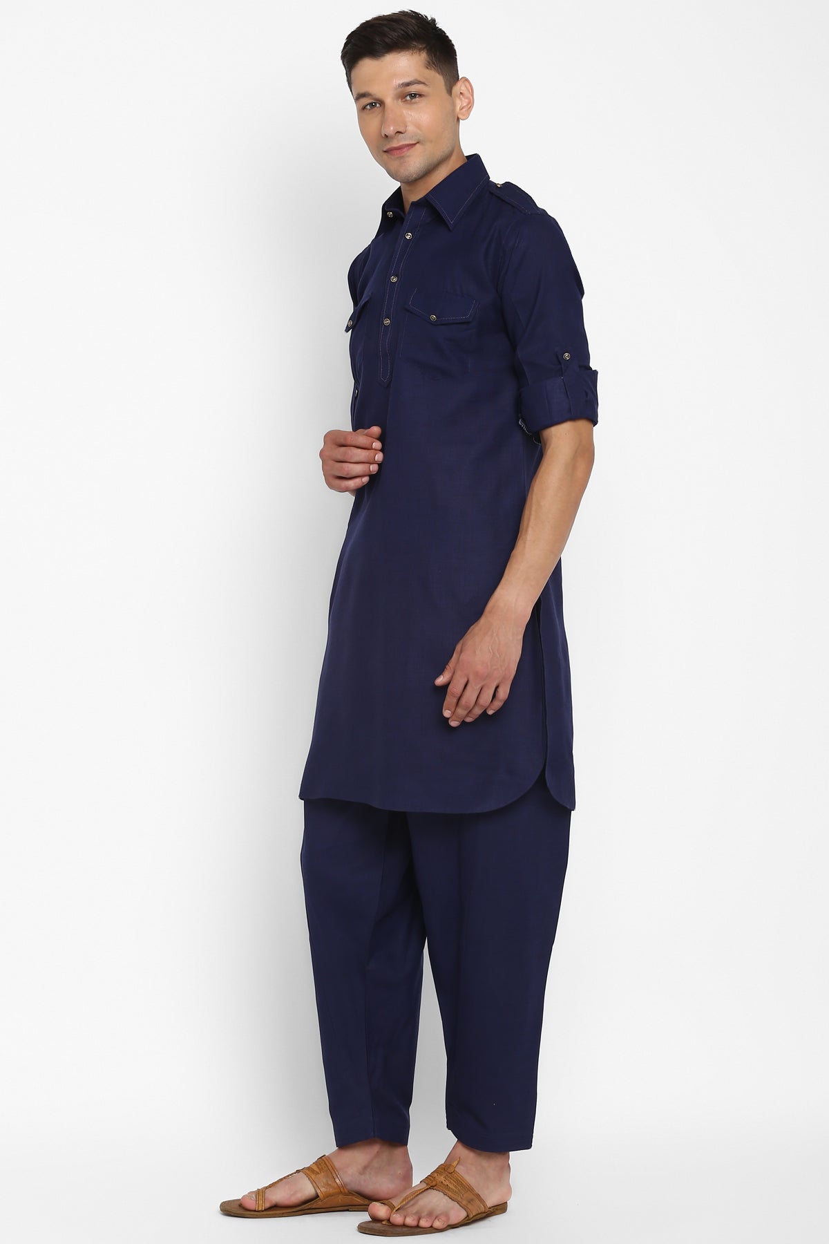 Royal pathani kurta set made in cotton linen. This set is perfect for the festive season, crafted for sheer comfort and class. The bottoms are made of 100% cotton.